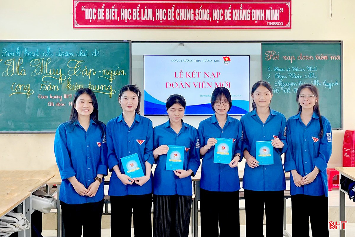 Tại Trường THPT Hương Khê, các hoạt động kỷ niệm được triển khai sôi nổi thông qua sinh hoạt chi đoàn theo chủ đề, kết hợp tổ chức lễ kết nạp đoàn viên mới. Em Phan Thảo Nhi - học sinh lớp 11A1, Trường THPT Hương Khê chia sẻ: “Được kết nạp Đoàn đúng dịp kỷ niệm 120 năm Ngày sinh Tổng Bí thư Hà Huy Tập là niềm vinh dự lớn đối với em. Đây cũng là động lực để em tiếp tục rèn luyện, học tập tốt hơn, xứng đáng với truyền thống của thế hệ đi trước.”