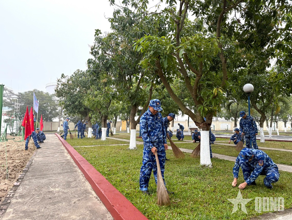 Tuổi trẻ Hải đoàn 11 tham gia vệ sinh củng cố doanh trại chính quy, xanh - sạch - đẹp.