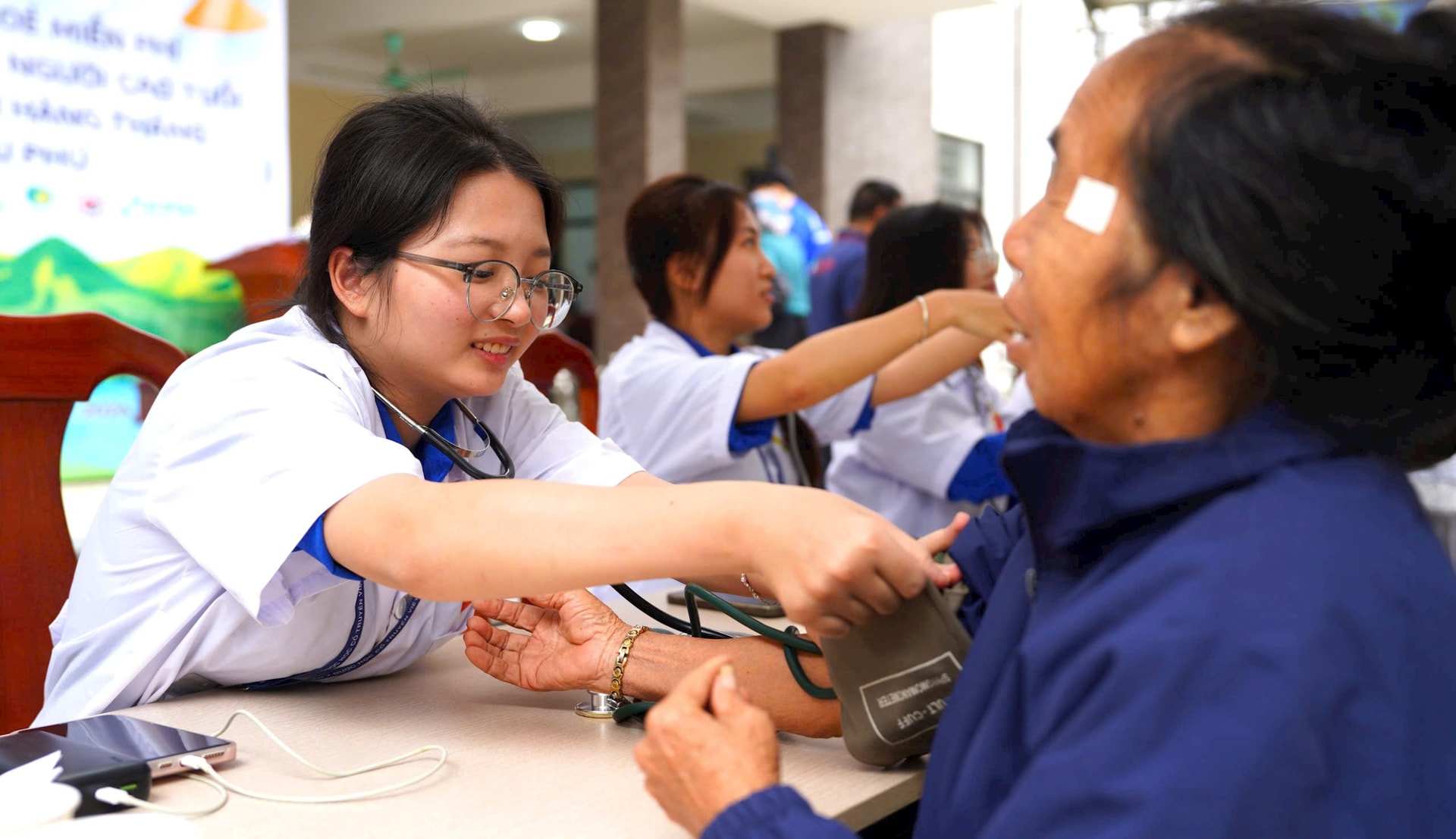 Lực lượng đoàn viên thanh niên, sinh viên tình nguyện của Học viện tham gia hỗ trợ xuyên suốt chương trình, từ hướng dẫn người dân làm thủ tục, phân luồng khám bệnh đến bảo đảm trật tự, an toàn. Qua đó, sinh viên có thêm cơ hội rèn luyện kỹ năng nghề nghiệp, kỹ năng giao tiếp và bồi đắp tinh thần trách nhiệm, ý thức phụng sự cộng đồng.