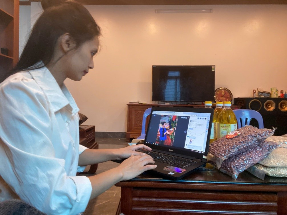Chị Gia Thị Thương xây dựng kênh bán hàng trên các nền tảng xã hội.