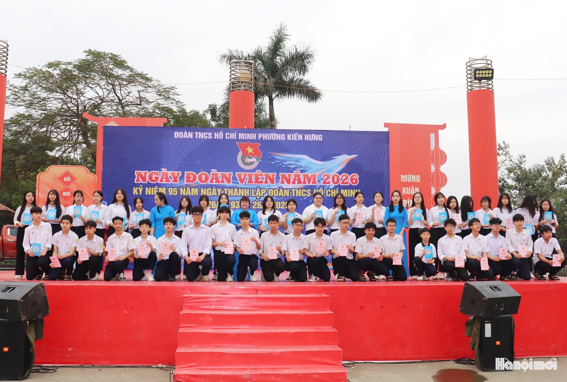 Ban Chấp hành Đoàn phường trao quyết định kết nạp 95 đoàn viên mới. Ảnh: Tuấn Điệp