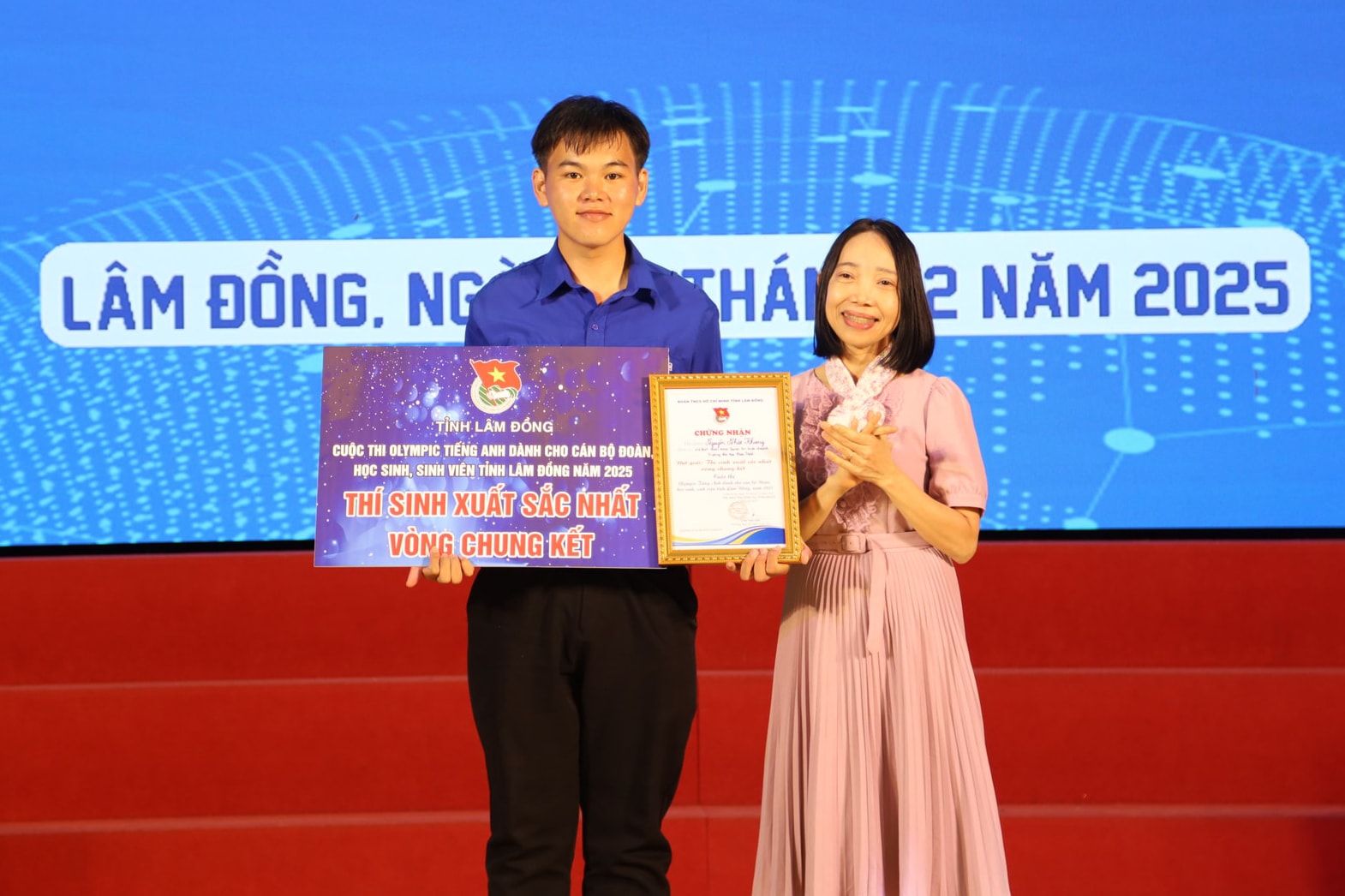 Đại diện Tỉnh đoàn Lâm Đồng trao giải cho đội thi xuất sắc nhất tại Cuộc thi Olympic tiếng Anh dành cho cán bộ đoàn, học sinh, sinh viên tỉnh Lâm Đồng năm 2025
