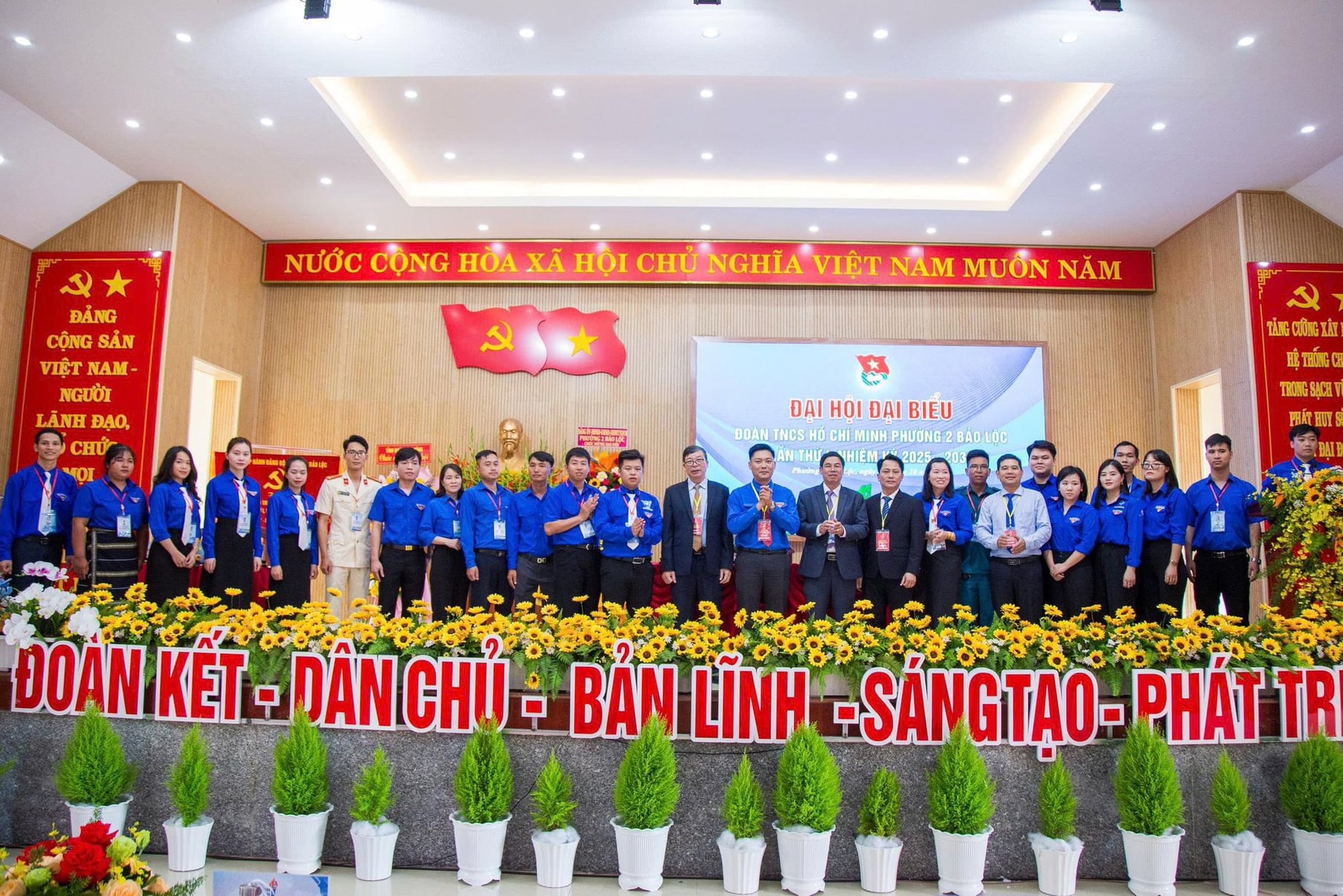 Các đại biểu chụp hình lưu niệm với Ban Chấp hành Đoàn TNCS Hồ Chí Minh phường 2 Bảo Lộc khóa I, nhiệm kỳ 2025 - 2030