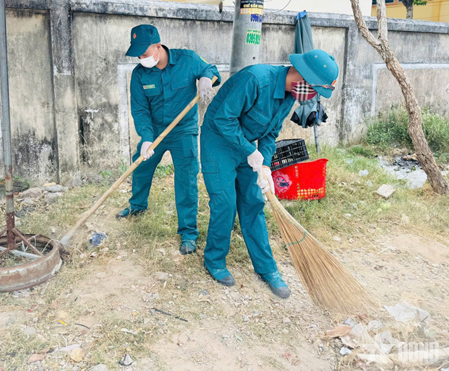 Dọn vệ sinh tuyến đường khu dân cư.