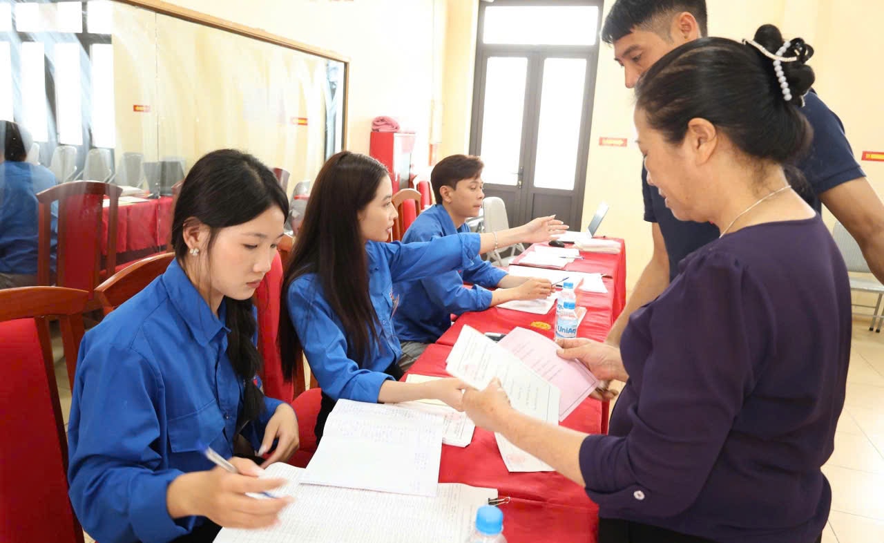 Đoàn viên xã Mê Linh tham gia phục vụ công tác bầu cử. Ảnh: PV