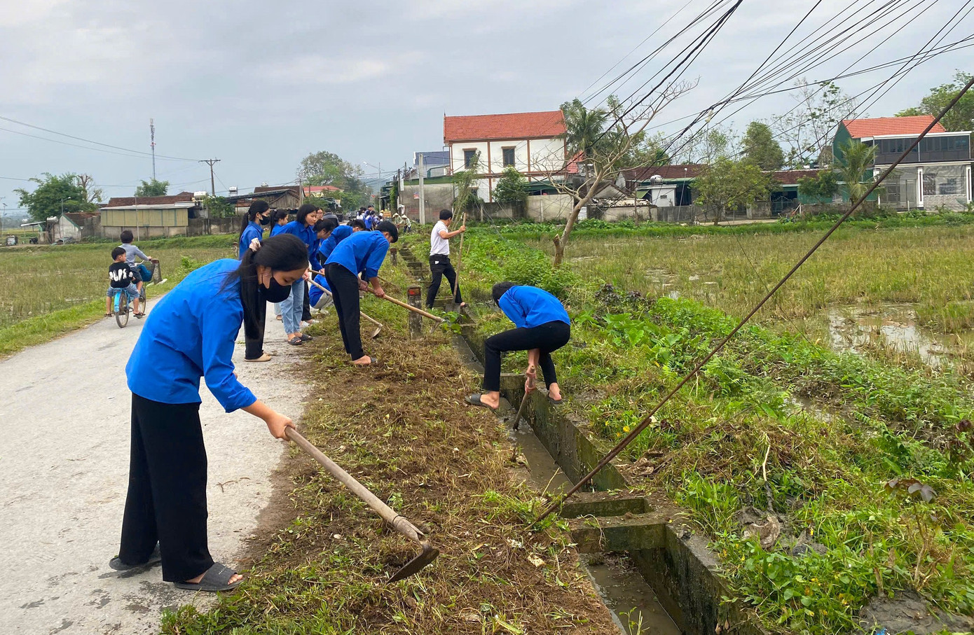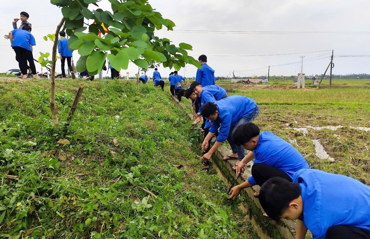 Những tuyến đường lớn nhỏ hay tuyến đường nội đồng đều được các đoàn viên thanh niên miệt mài dọn sạch sẽ.