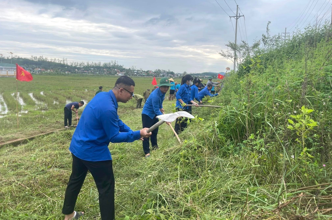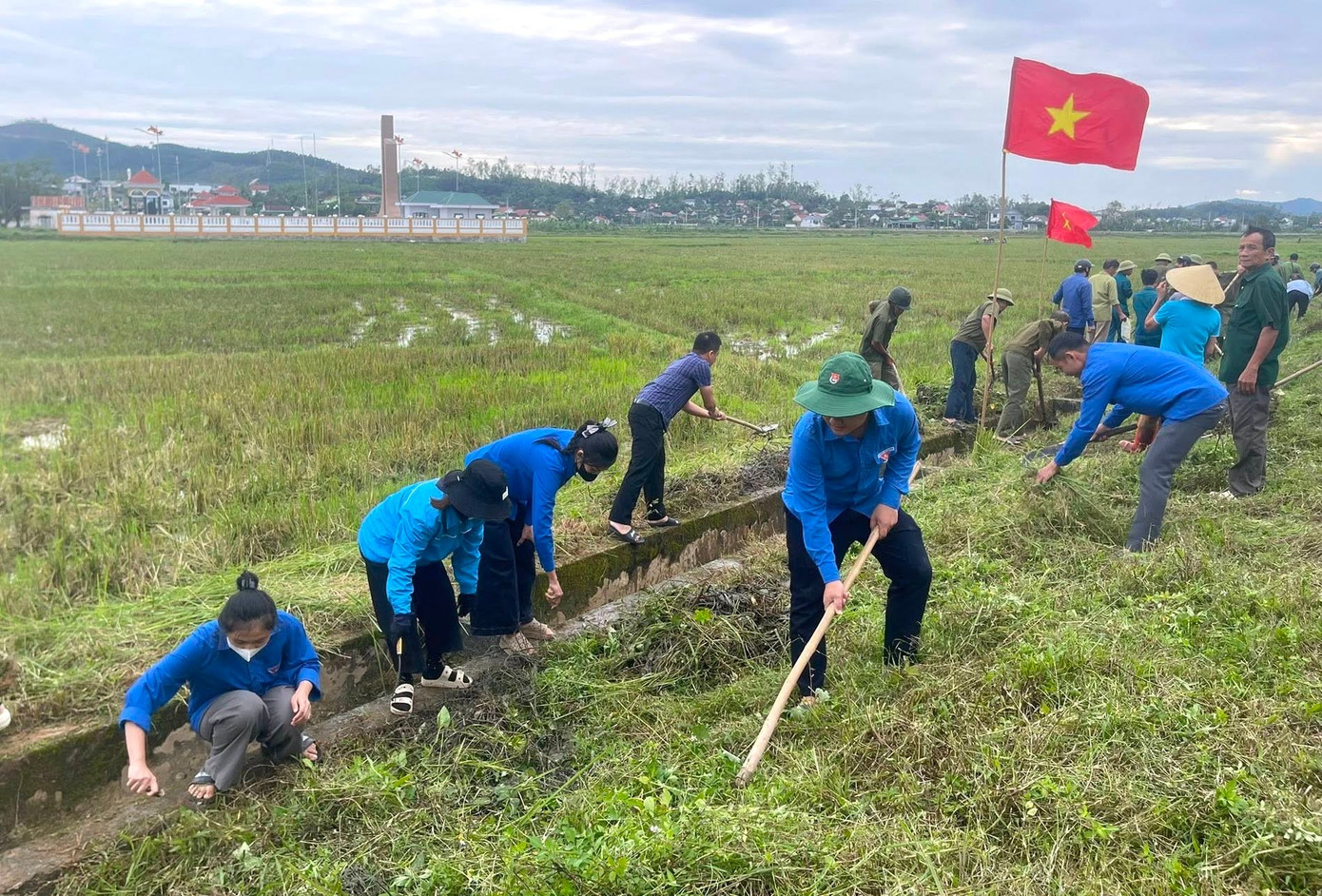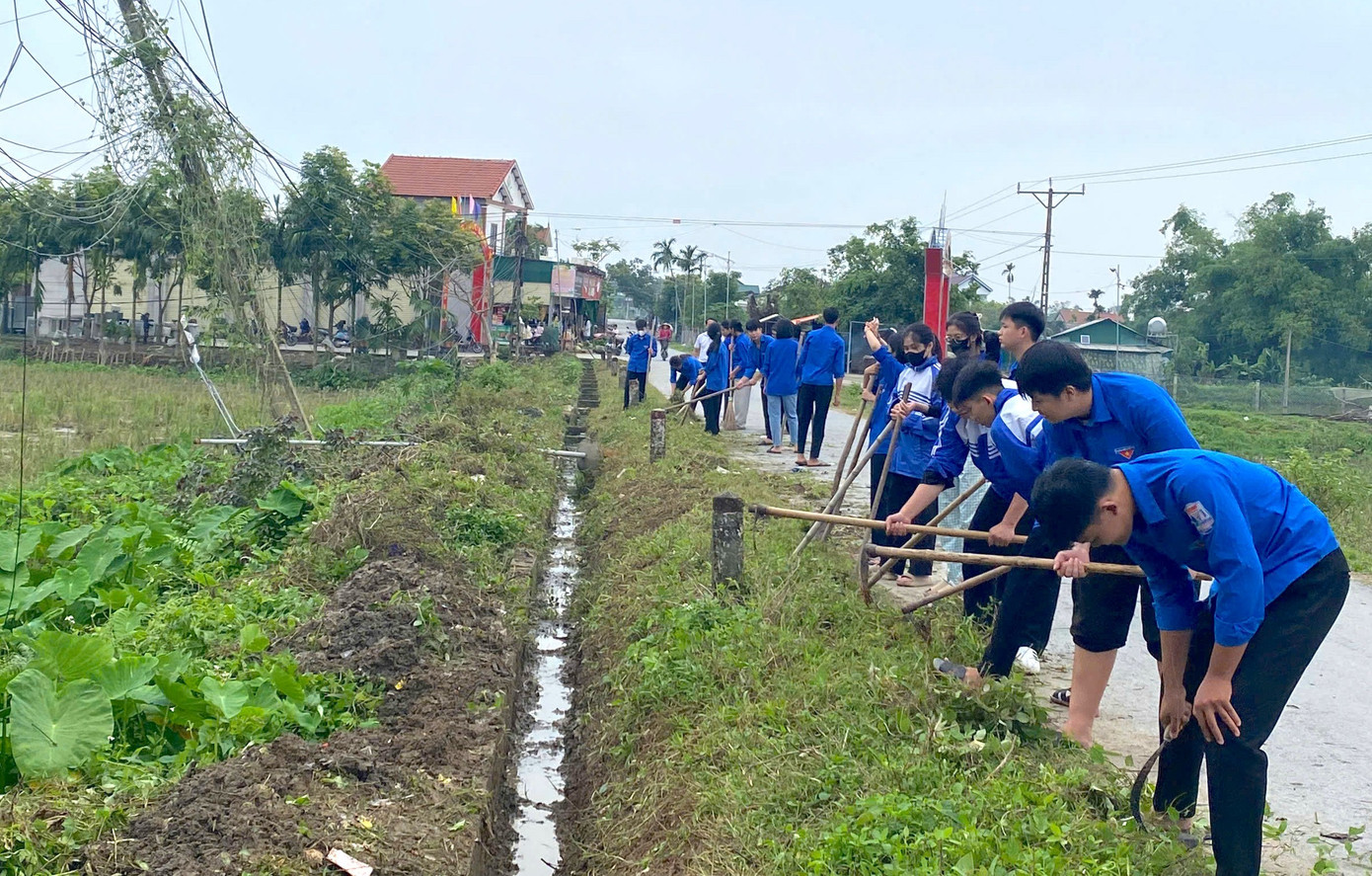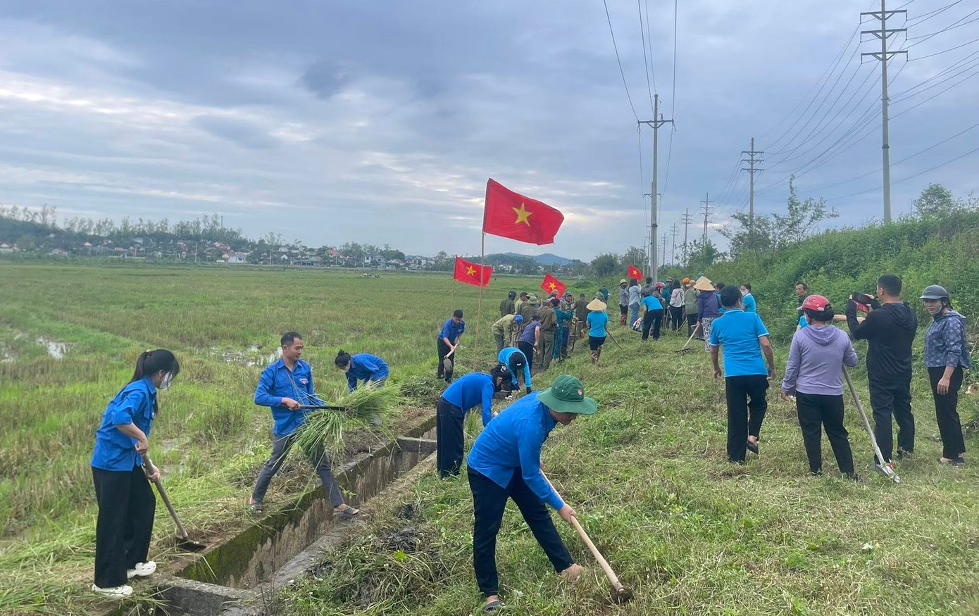 Tại xã Tam Đồng (Nghệ An), hơn 500 đoàn viên, thanh niên toàn xã đã ra quân làm sạch các tuyến đường, nạo vét hơn 5km kênh mương nội đồng, góp phần khơi thông dòng chảy, phục vụ sản xuất vụ Đông và phòng chống ngập úng. Ảnh: Ngọc Tú=