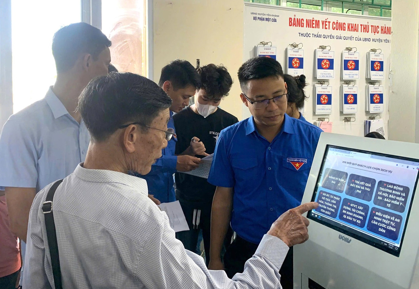 Phát huy vai trò tiên phong của thanh niên trong các hoạt động chuyển đổi số. (Trong ảnh, đoàn viên thanh niên tỉnh Ninh Bình hỗ trợ, hướng dẫn người dân tại trung tâm phục vụ hành chính công). Ảnh: TĐNB