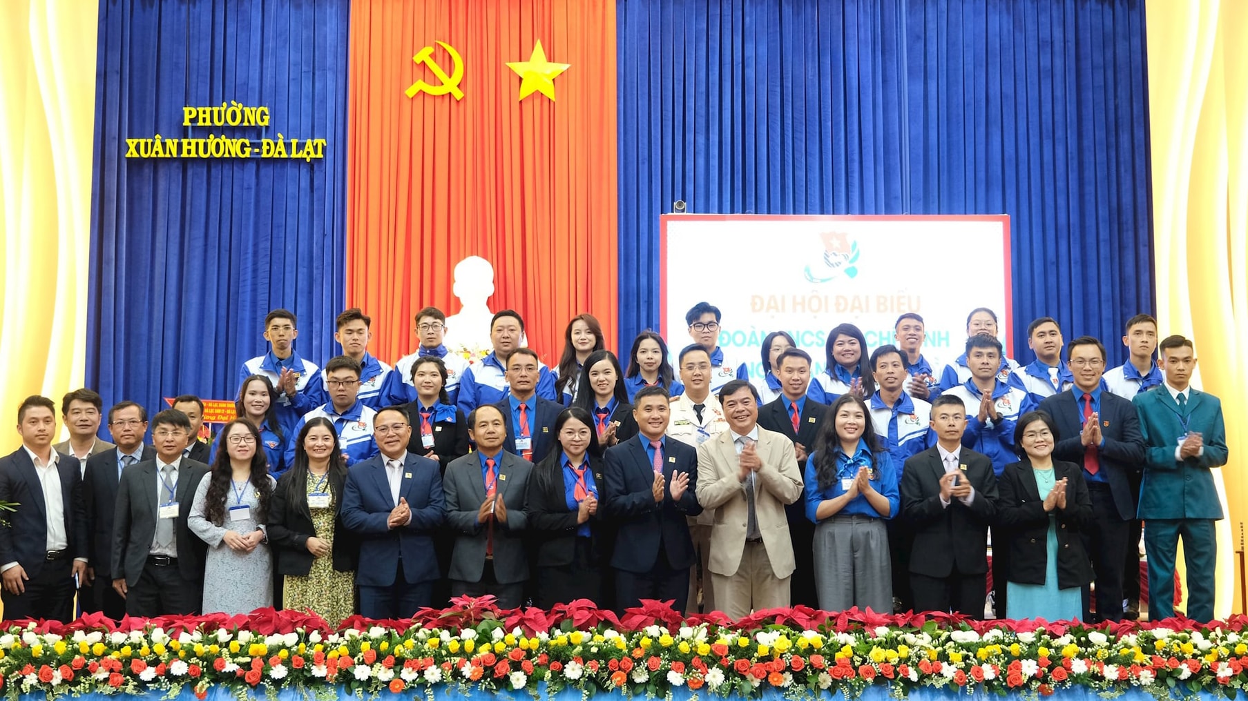 Ban Chấp hành Đoàn TNCS phường Xuân Hương - Đà Lạt nhiệm kỳ mới ra mắt Đại hội và chụp ảnh lưu niệm cùng các đại biểu