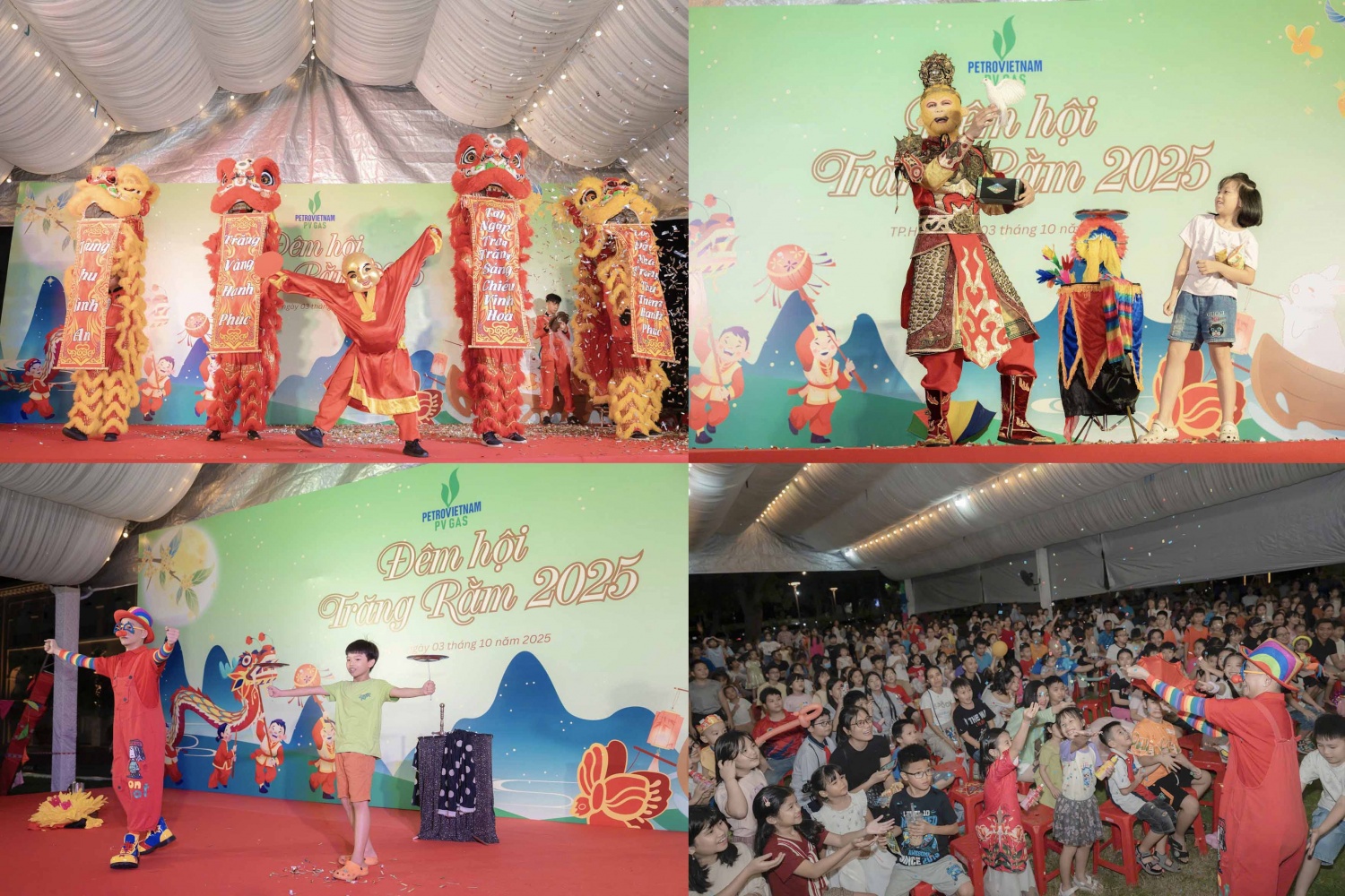 Không khí Trung thu ấy cũng lan tỏa rộn ràng ở Công ty Khí Cà Mau (PV GAS CA MAU) và Công ty Cổ phần Phân phối Khí thấp áp Dầu khí Việt Nam (PV GAS D), nơi các chương trình “Vui hội Trăng Rằm 2025” được tổ chức đầy ắp tiếng cười và sắc màu hạnh phúc.
