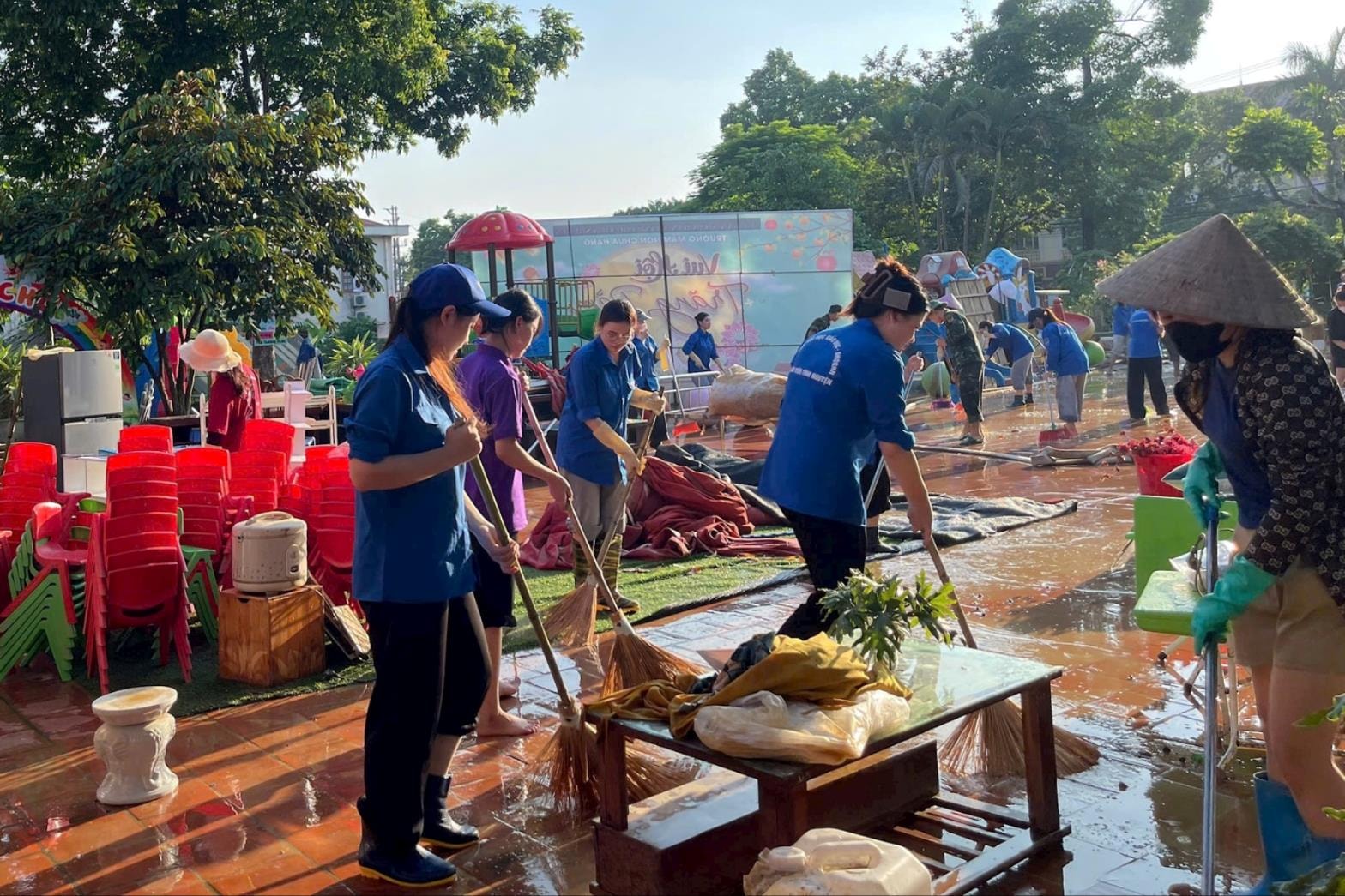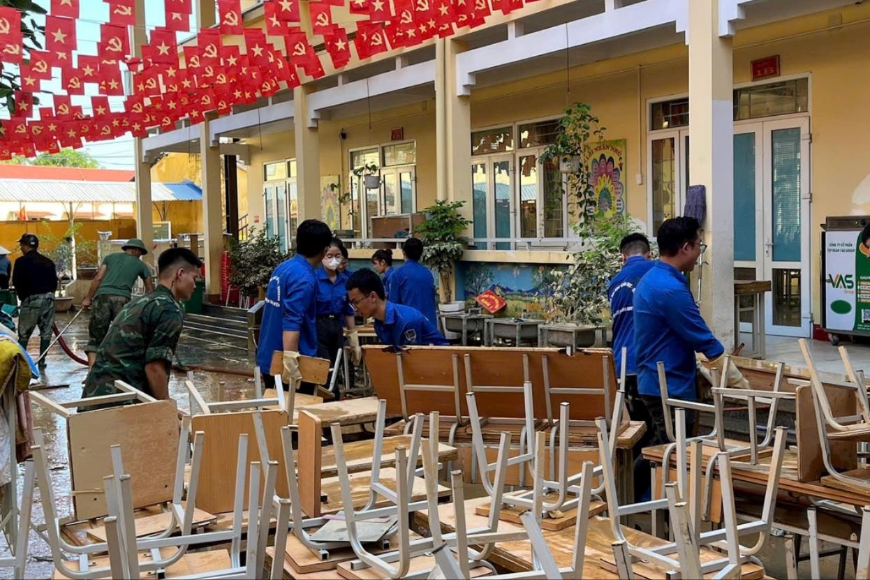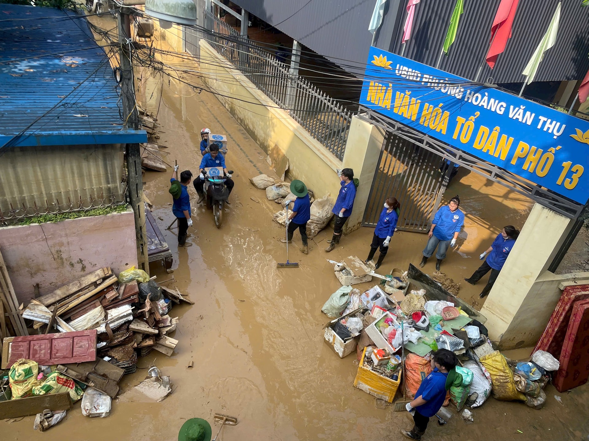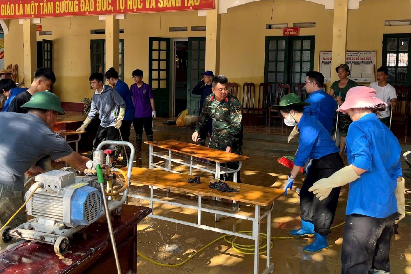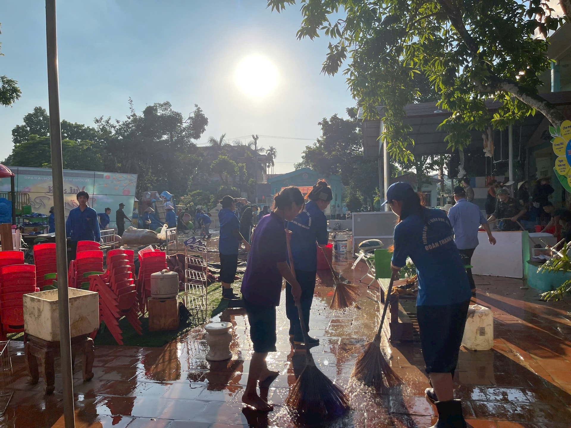 Các đội hình tập trung thực hiện các công việc khắc phục hậu quả bão lũ như vệ sinh khuôn viên các trường học, bệnh viện và đường phố bị ngập lụt; sửa chữa xe máy, đồ điện dân dụng miễn phí cho người dân...