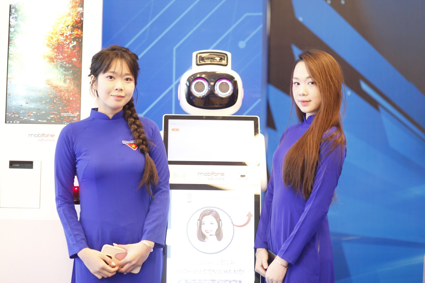 Robot lễ tân, kiosk hành chính số – mô phỏng giải pháp đang triển khai tại các trung tâm hành chính công, thể hiện quyết tâm xây dựng chính quyền số, phục vụ nhân dân nhanh chóng và hiệu quả.