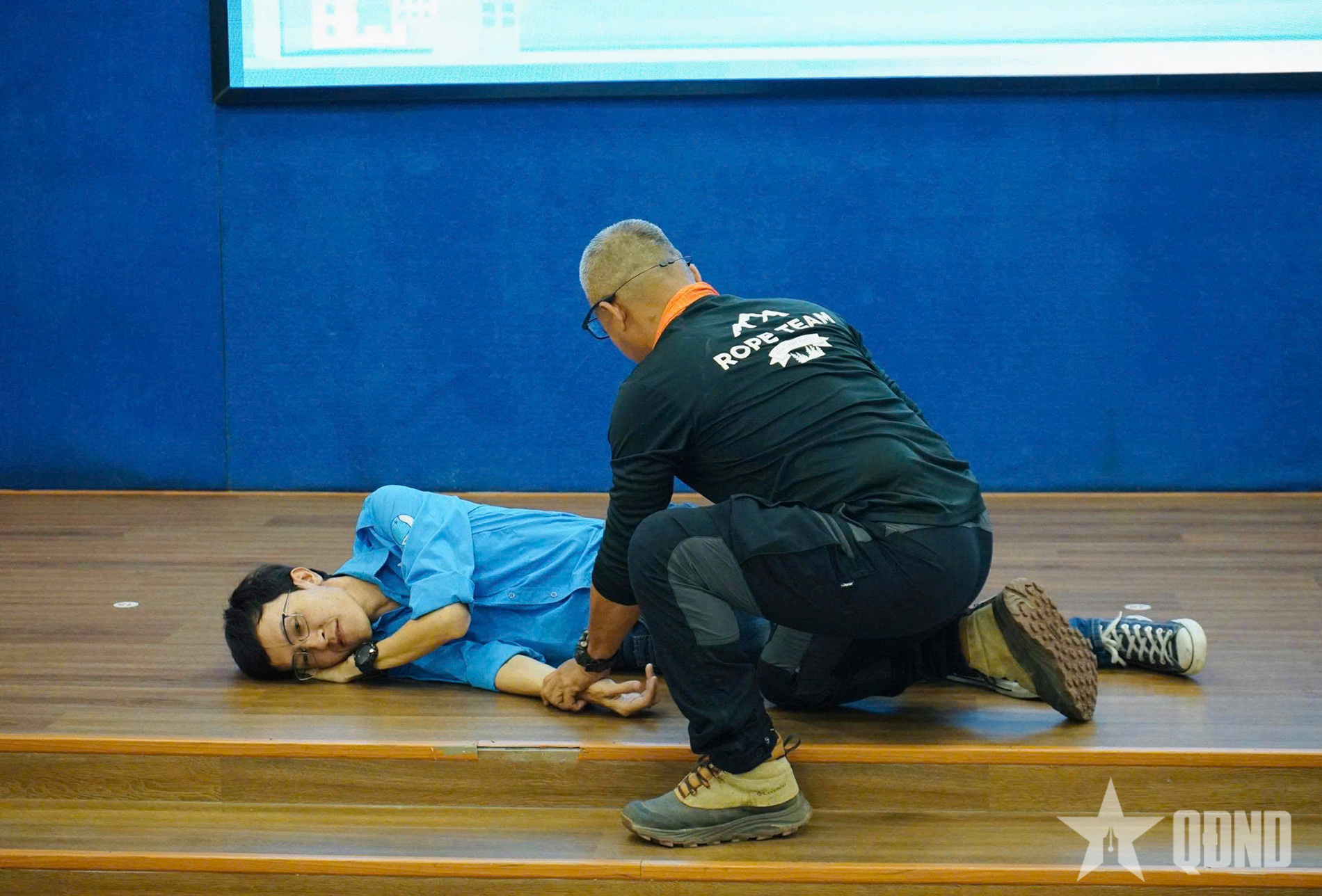 Chuyên gia tập huấn cho đội hình tình nguyện về các kỹ năng cần thiết trong thực hiện nhiệm vụ.