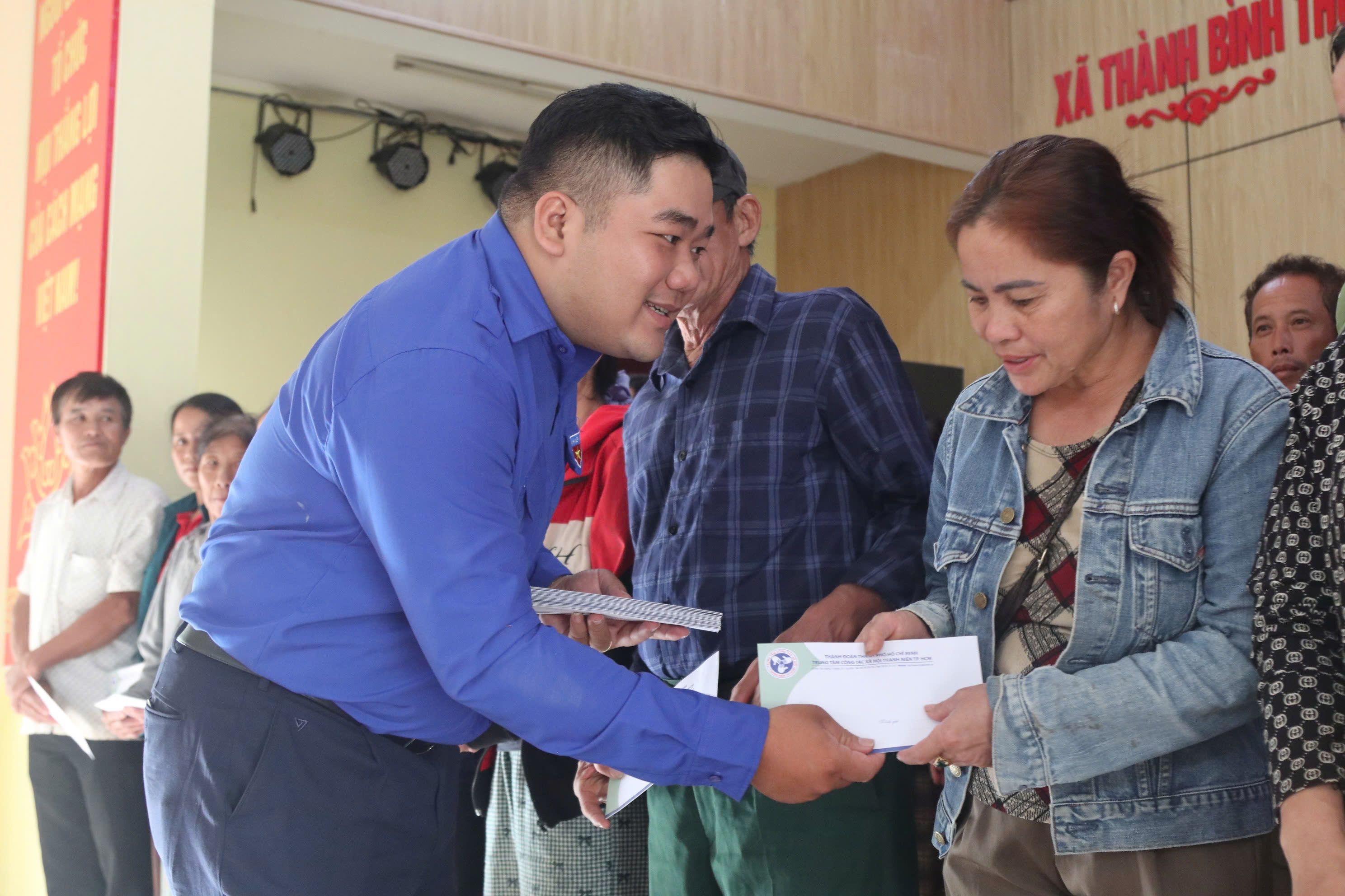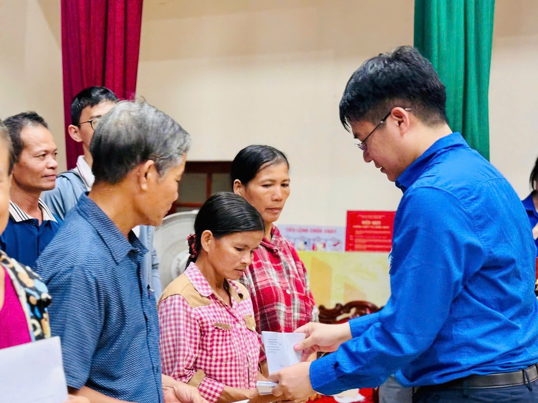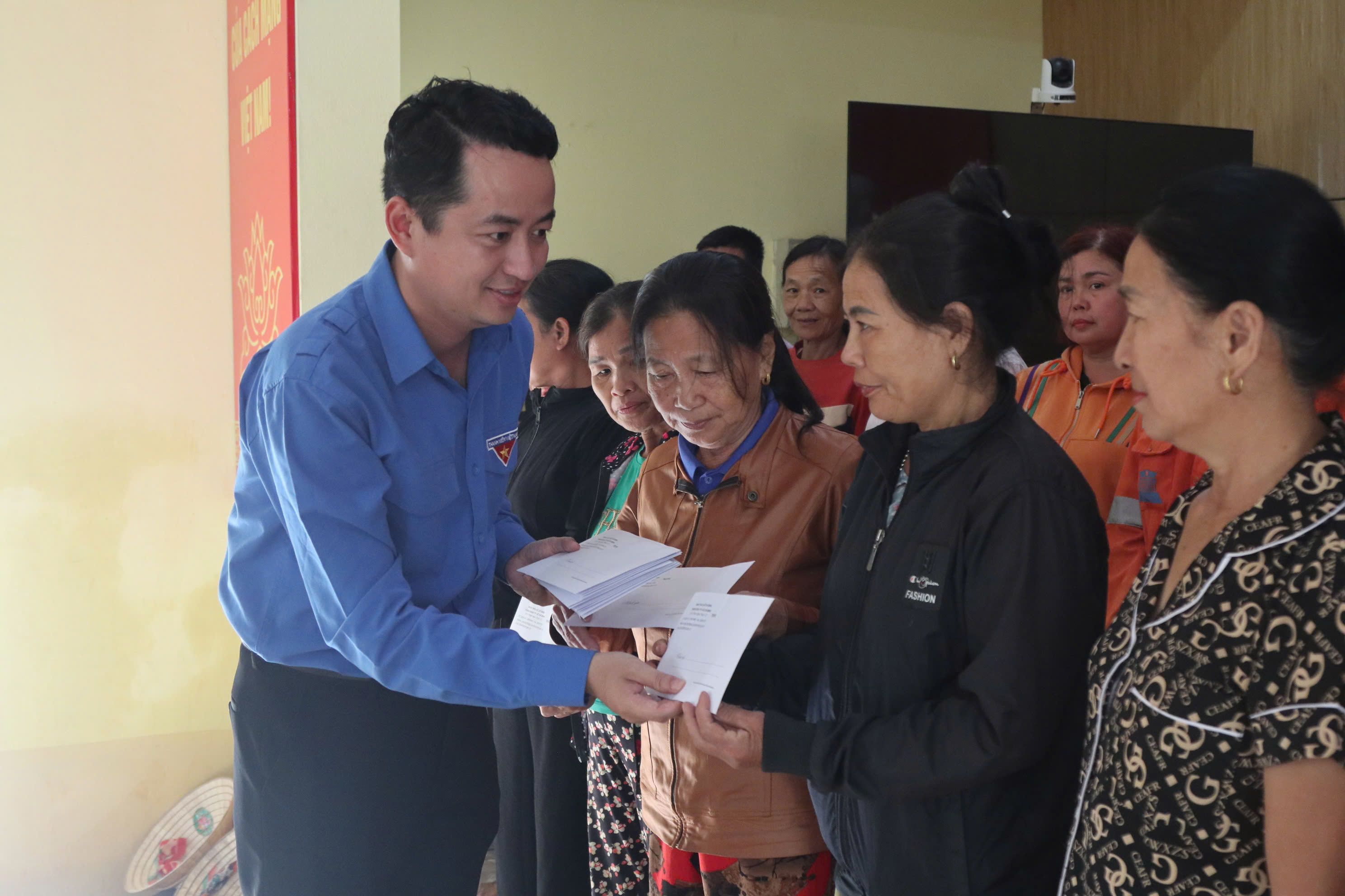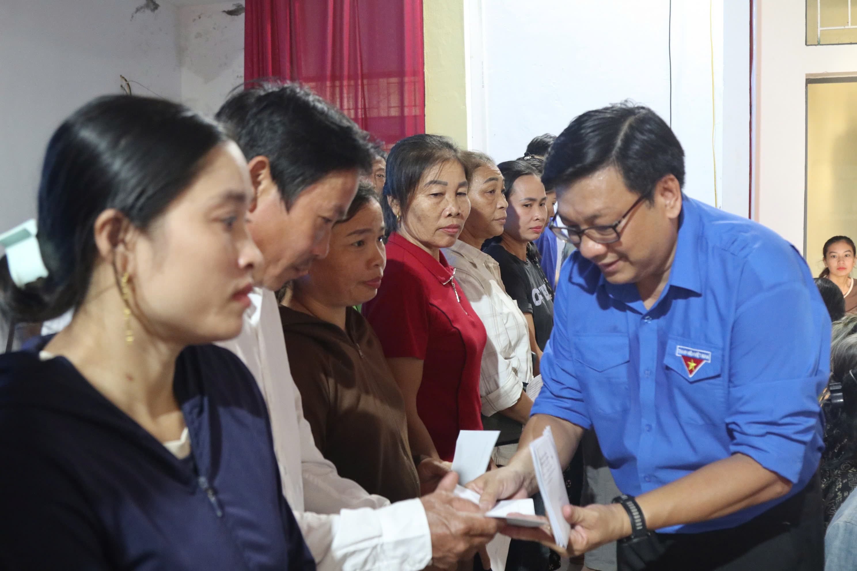 Theo đó, đoàn trao hỗ trợ 1.100 phần quà cho các hộ dân, mỗi hộ 2 triệu đồng; trao 105 phần quà cho các hộ dân bị thiệt hại nặng, mỗi hộ 8 triệu đồng; trao hỗ trợ 100 cán bộ đoàn khó khăn, mỗi trường hợp 2 triệu đồng; trao 300 triệu đồng hỗ trợ các hộ dân có phương tiện sản xuất.