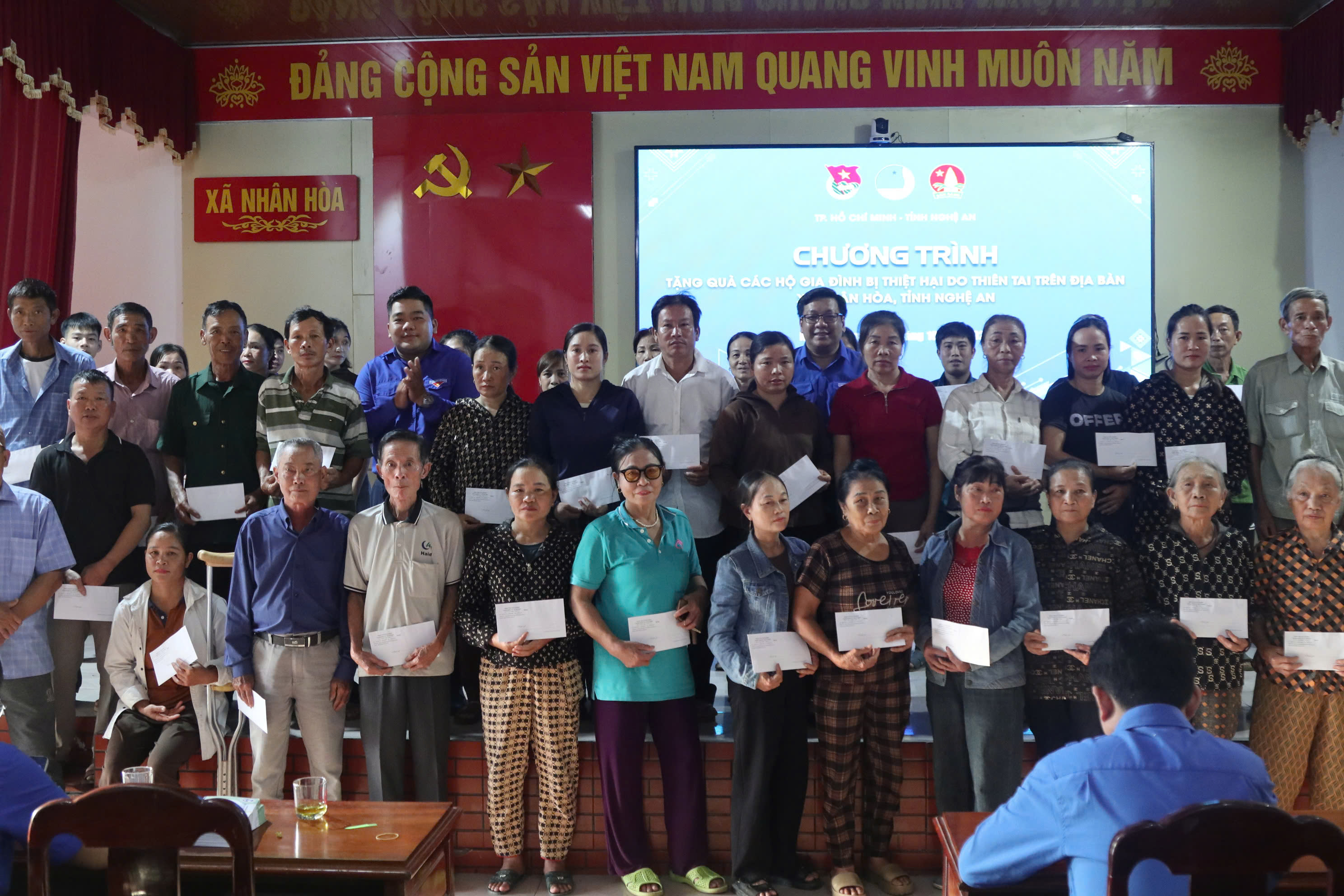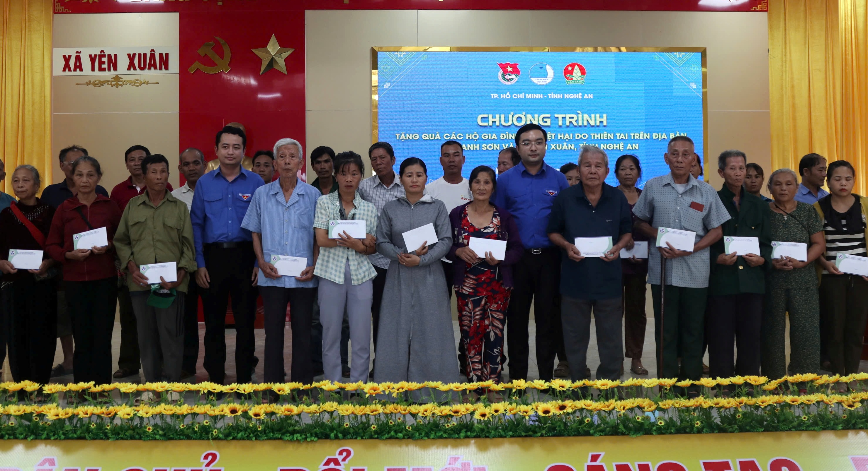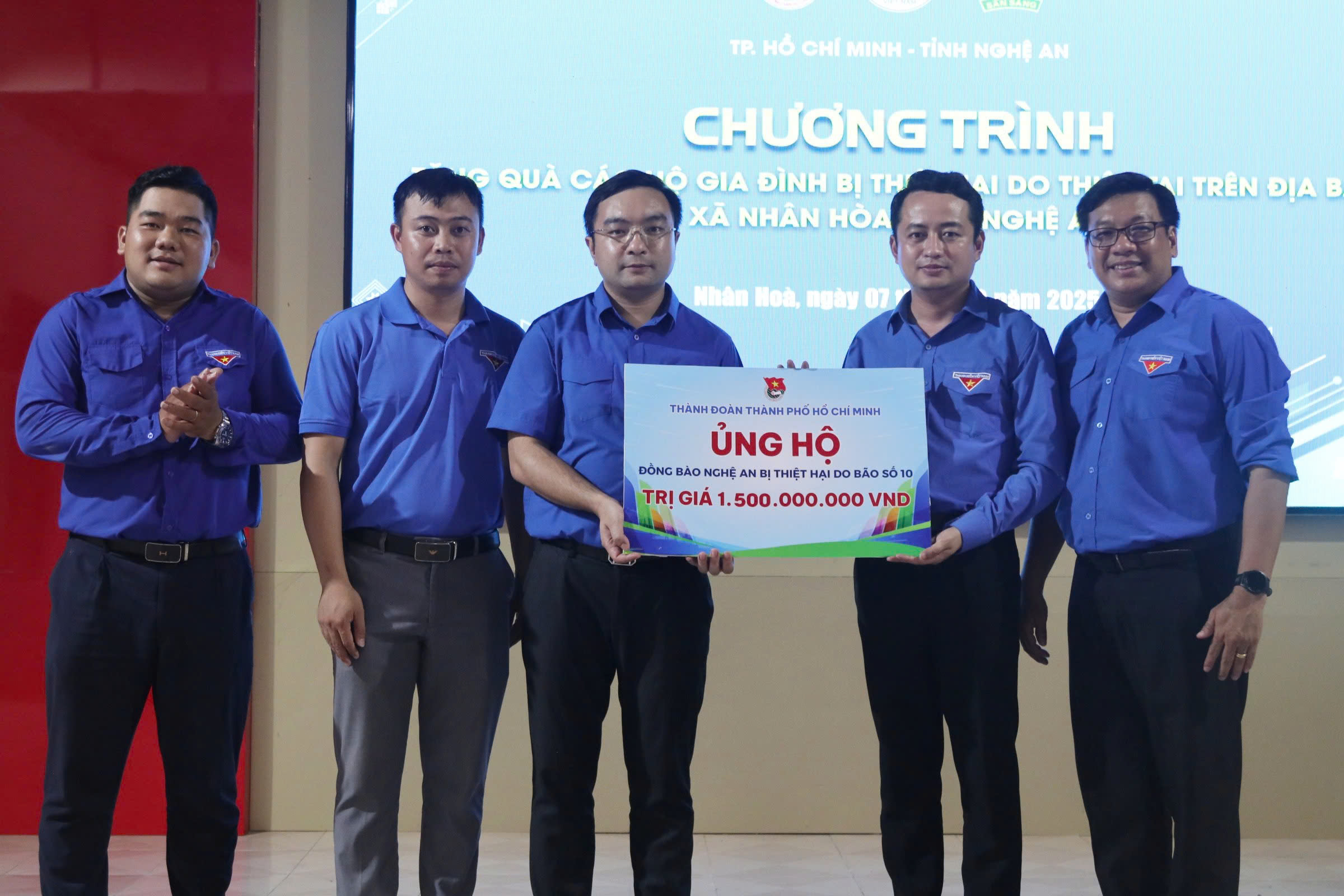 Lãnh đạo Thành đoàn TPHCM trao quà hỗ trợ các hộ dân ở Hà Tĩnh và Nghệ An