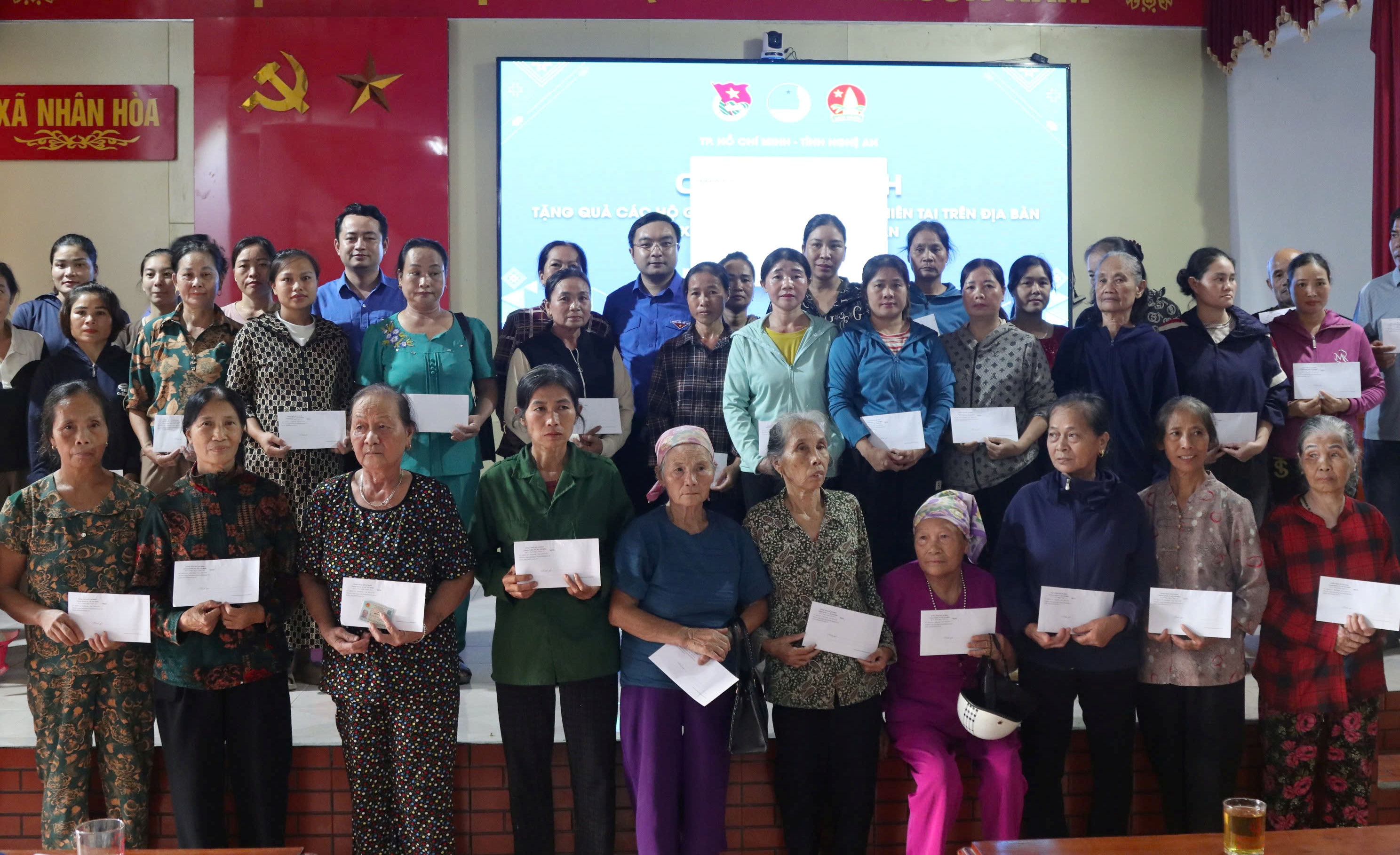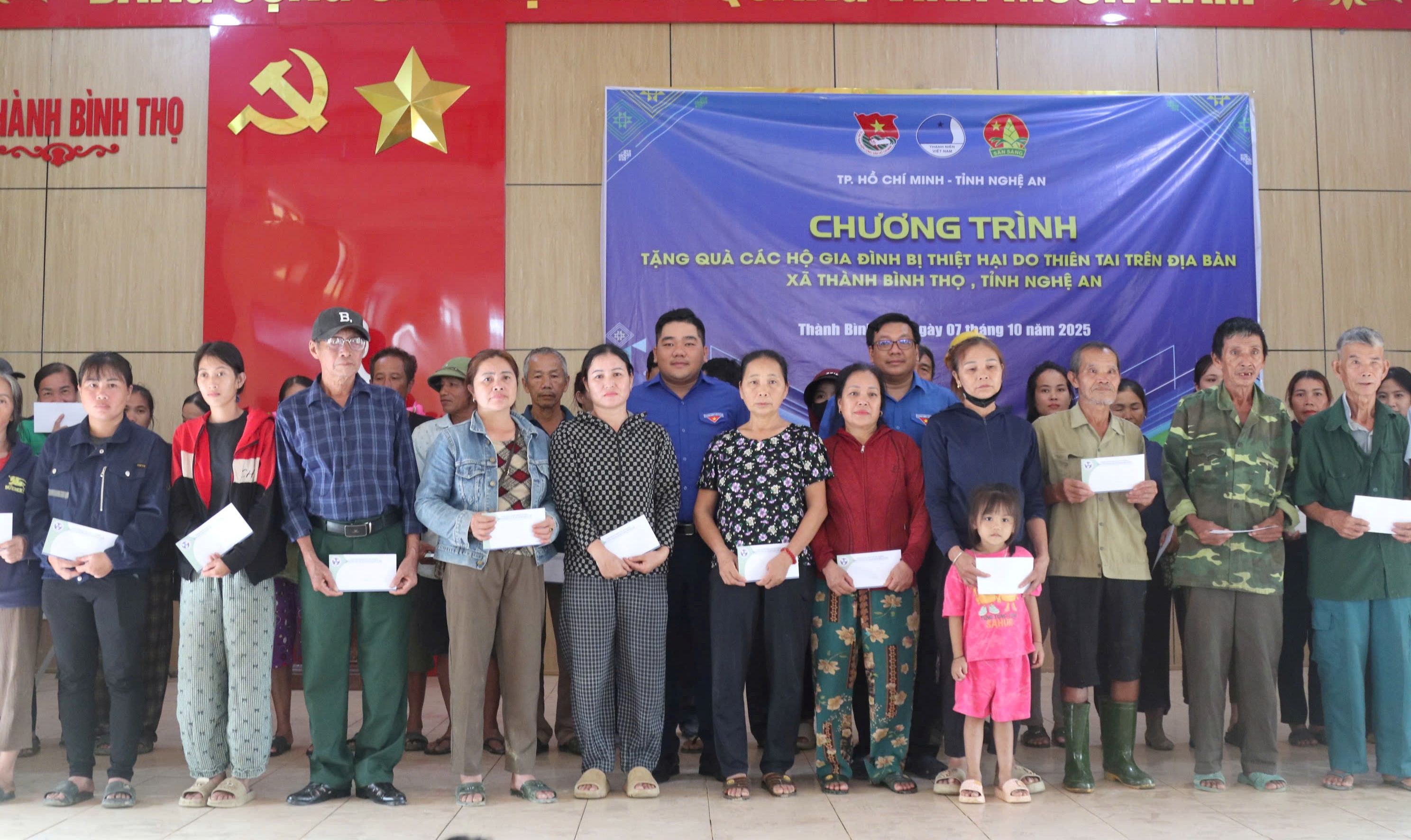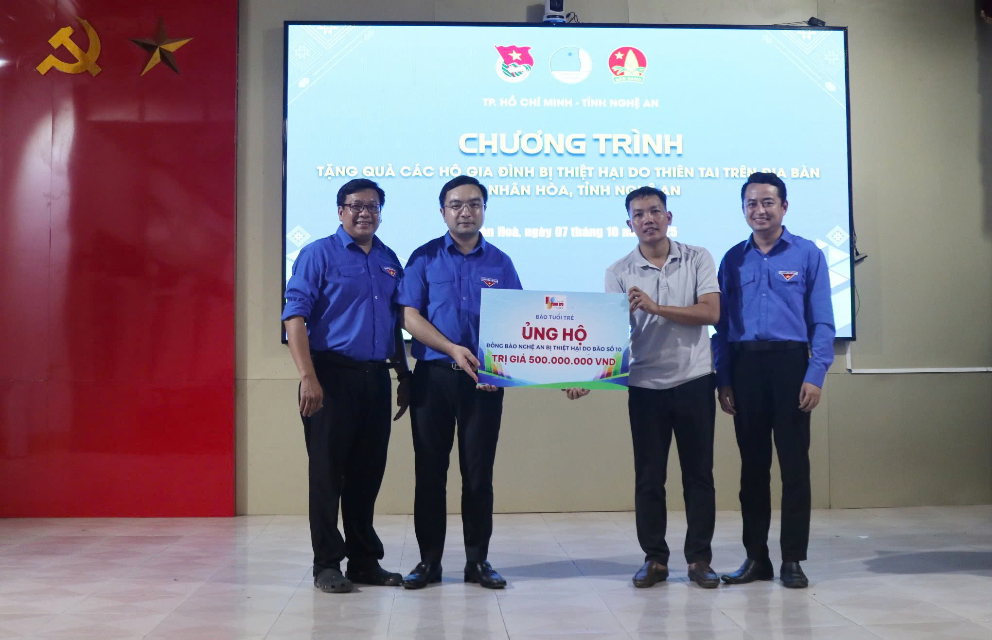 Lãnh đạo Thành đoàn TPHCM trao quà hỗ trợ các hộ dân ở Hà Tĩnh và Nghệ An