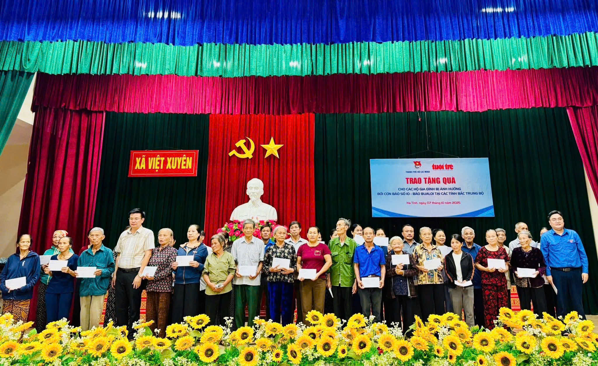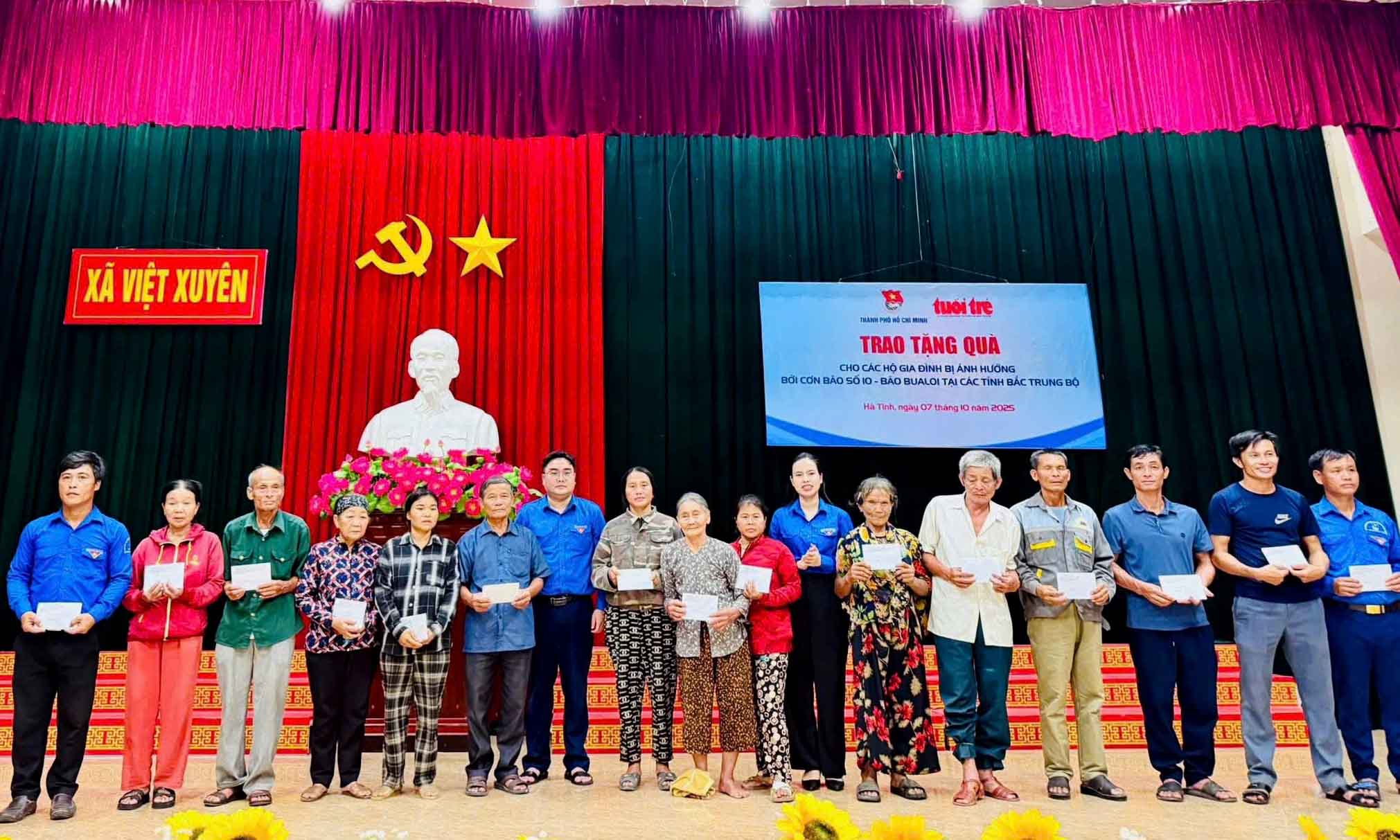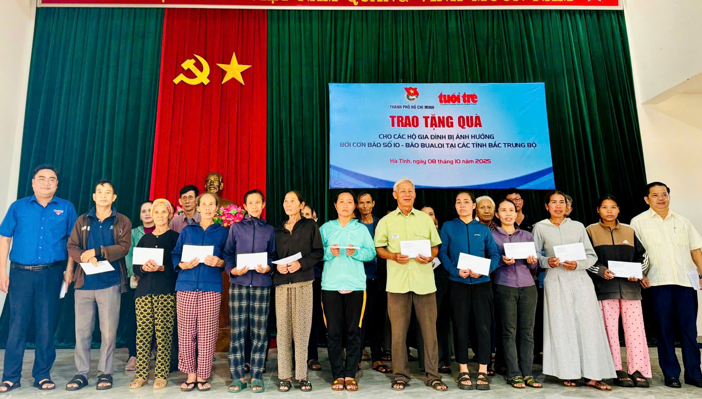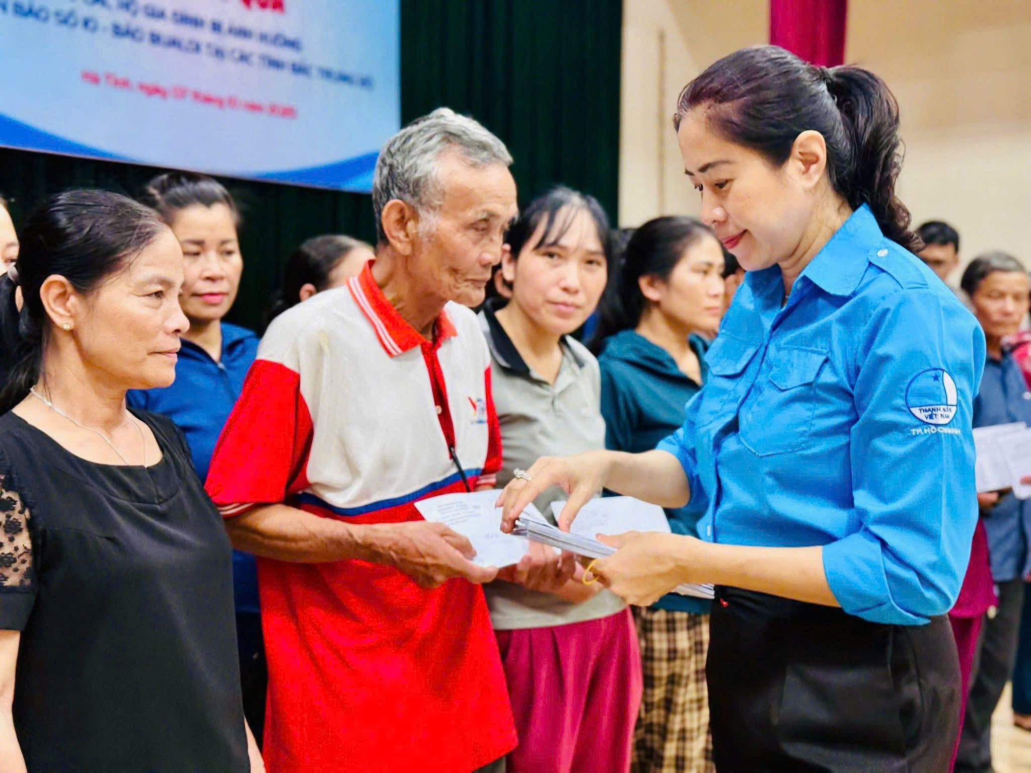Lãnh đạo Thành đoàn TPHCM và Tỉnh đoàn Hà Tĩnh trao quà hỗ trợ các hộ dân ở tỉnh Hà Tĩnh bị thiệt hại sau bão số 10