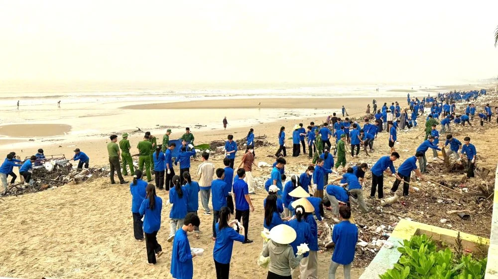Dù thời tiết nắng nóng nhưng lực lượng đoàn viên thanh niên đã phát huy vai trò xung kích, tình nguyện, tích cực tham gia đợt ra quân dọn rác trên bãi biển, chuẩn bị cho mùa du lịch biển năm 2026.