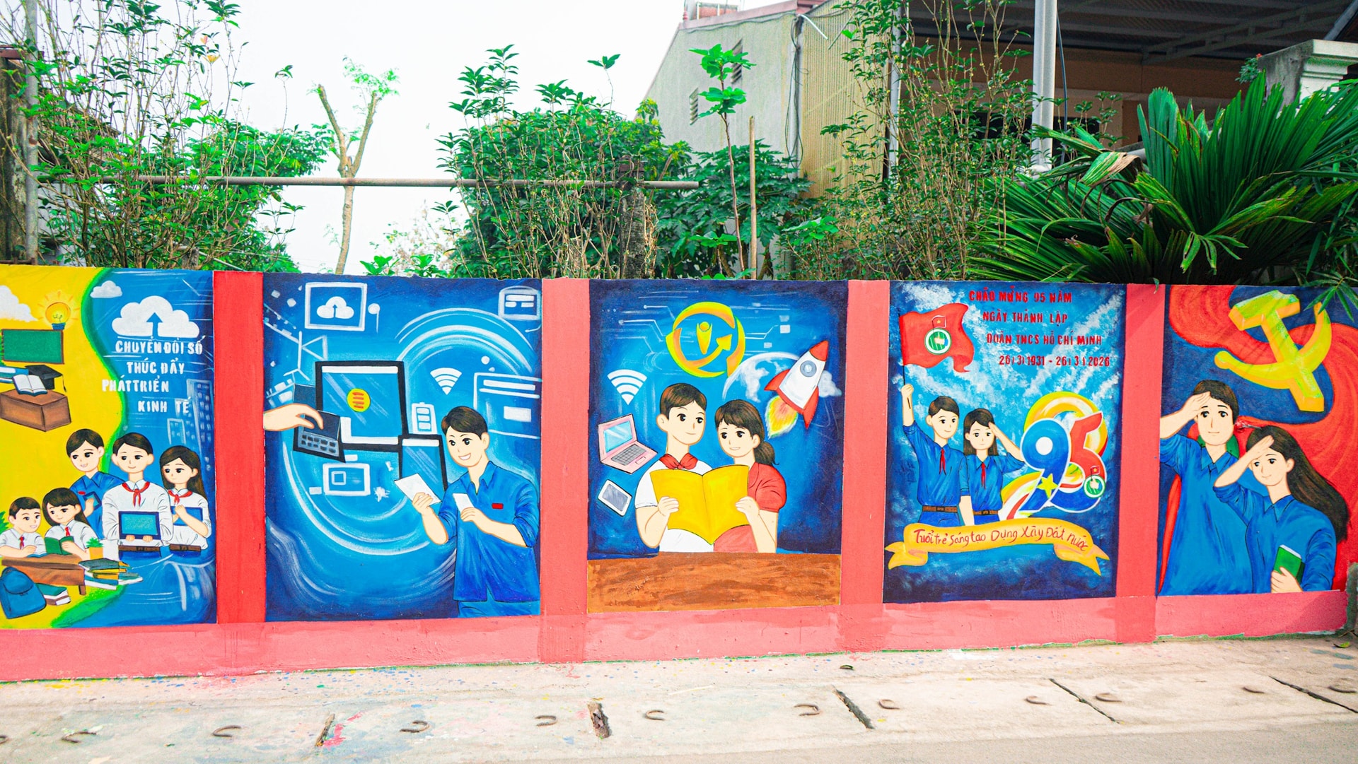 Có những công trình bích họa dài 300m, giúp bức tường cũ kỹ, rêu phong được khoác lên mình "tấm áo mới", làm đẹp cảnh quan nông thôn mới, lan tỏa các thông điệp tuyên truyền về bầu cử, xây dựng thôn xóm văn minh, sáng - xanh - sạch đẹp.