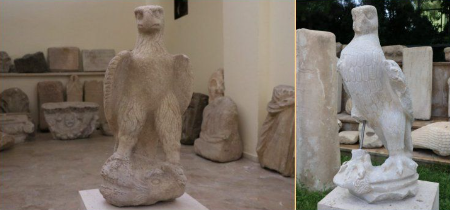 Trong hai bức tượng đại bàng này, thì một tượng đã bị vỡ phần cánh, và một tượng còn lại thì nguyên vẹn. Ảnh: @Đại học Dokuz Eylül Burak Yolaçan.