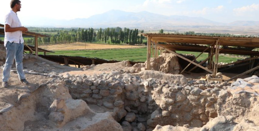Trong quá trình khai quật tại tàn tích quảng trường bên cạnh ngôi đền thời kỳ Hy Lạp cổ đại ở Kınık Mound, gần làng Yeşilyurt thuộc quận Altunhisar của Niğde, Thổ Nhĩ Kỳ, các chuyên gia đến từ trường Đại học Dokuz Eylül Burak Yolaçan bất ngờ tìm thấy hai cổ vật lạ. Ảnh: @Đại học Dokuz Eylül Burak Yolaçan.