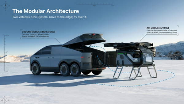 Phương tiện gồm 2 phần: một chiếc xe chạy trên mặt đất mang thiết kế hơi hướm tương lai cùng một máy bay cất hạ cánh thẳng đứng chạy điện. Máy bay có thể gấp lại và cất giữ trong cốp xe, cả hai dễ dàng tách ra hay hợp lại chỉ trong 5 phút.