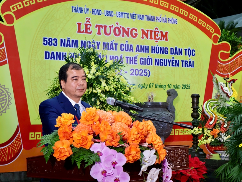 Phát biểu tại buổi lễ, Phó Chủ tịch UBND TP Hải Phòng Nguyễn Minh Hùng – Phó Trưởng Ban Thường trực Ban Tổ chức Lễ hội Côn Sơn – Kiếp Bạc năm 2025 – nhấn mạnh: Lễ tưởng niệm là hoạt động văn hóa có ý nghĩa sâu sắc, thể hiện đạo lý “uống nước nhớ nguồn”, sự tri ân của nhân dân đối với công lao to lớn của Anh hùng dân tộc Nguyễn Trãi – bậc đại trí, đại nhân, đại dũng của dân tộc Việt Nam, người đã hiến trọn cuộc đời cho sự nghiệp độc lập dân tộc và an dân.