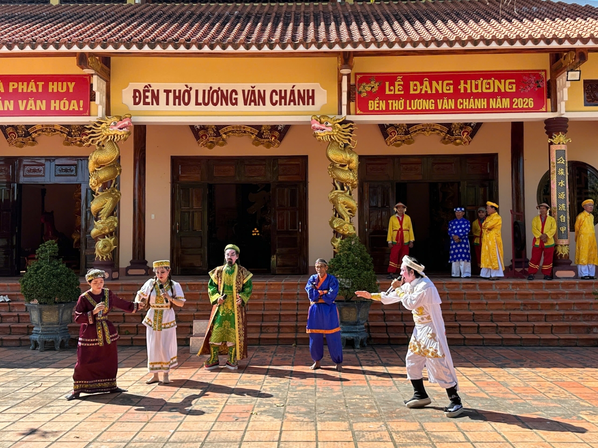 Biểu diễn một vở tuồng cổ tại Lễ hội đền thờ danh nhân Lương Văn Chánh.