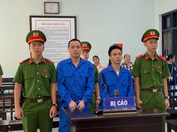 Bị cáo Chung (trái) và Huy tại phiên tòa sơ thẩm.