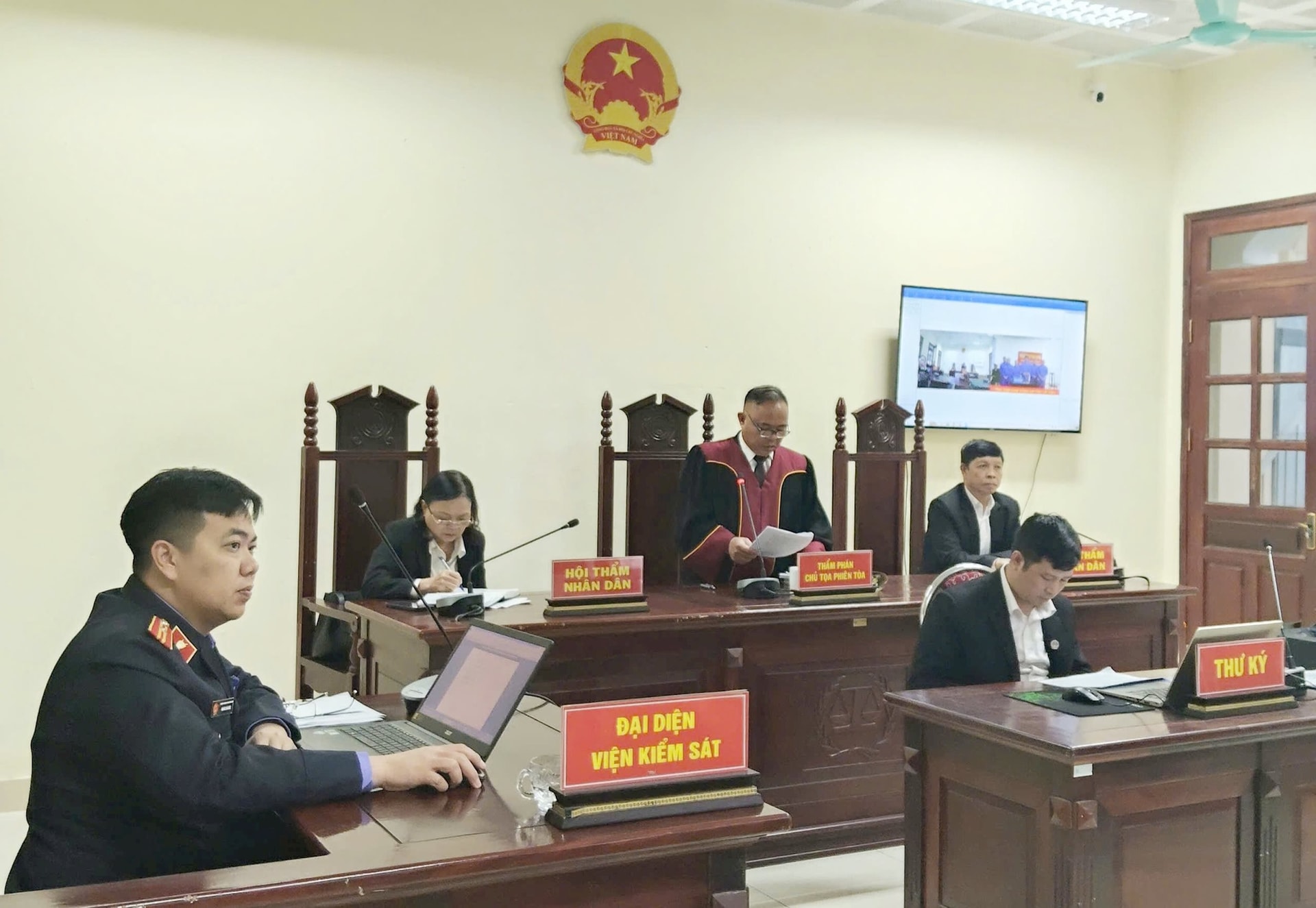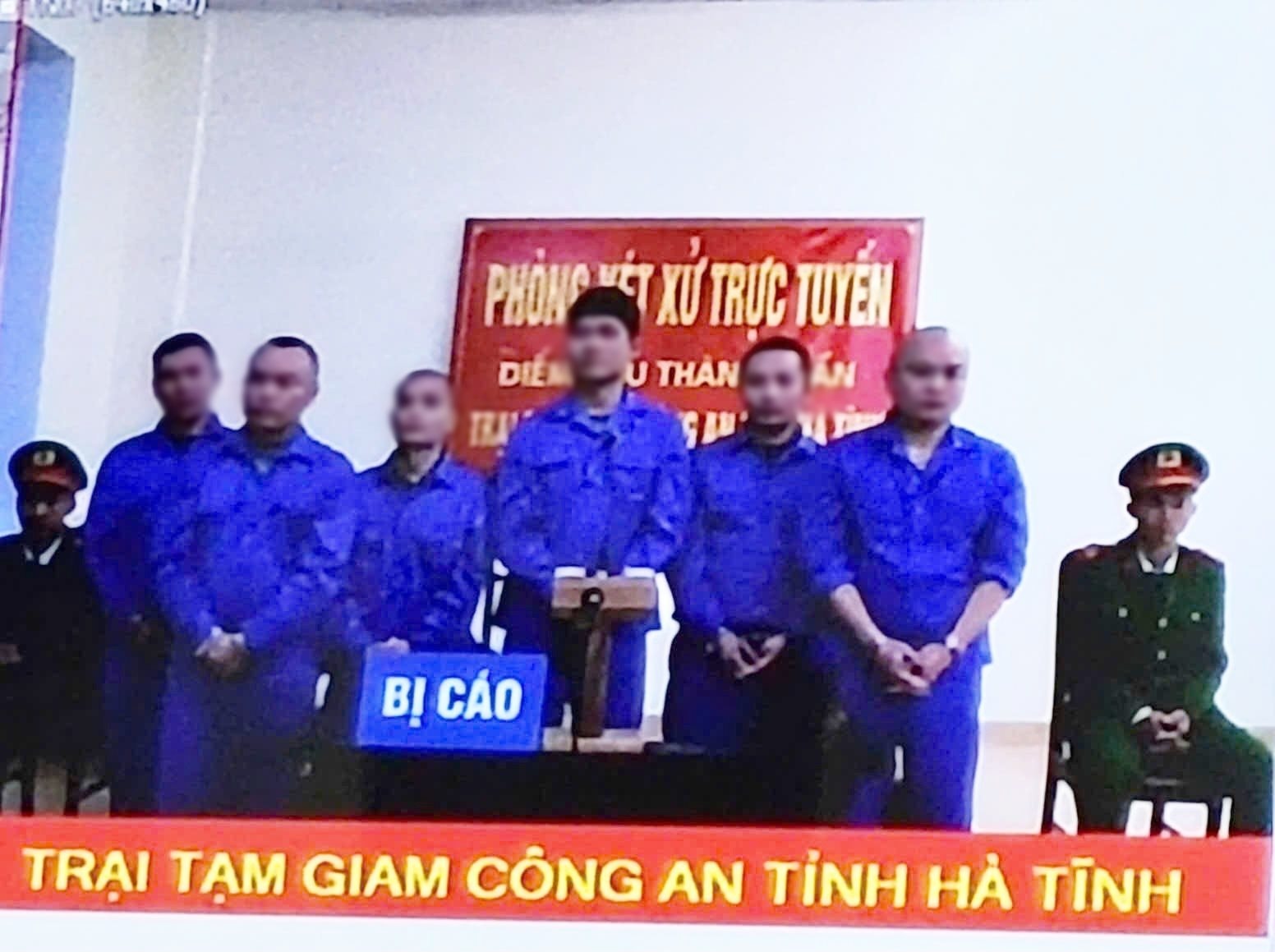 Các bị cáo tại điểm cầu thành phần Trại tạm giam Công an tỉnh Hà Tĩnh.