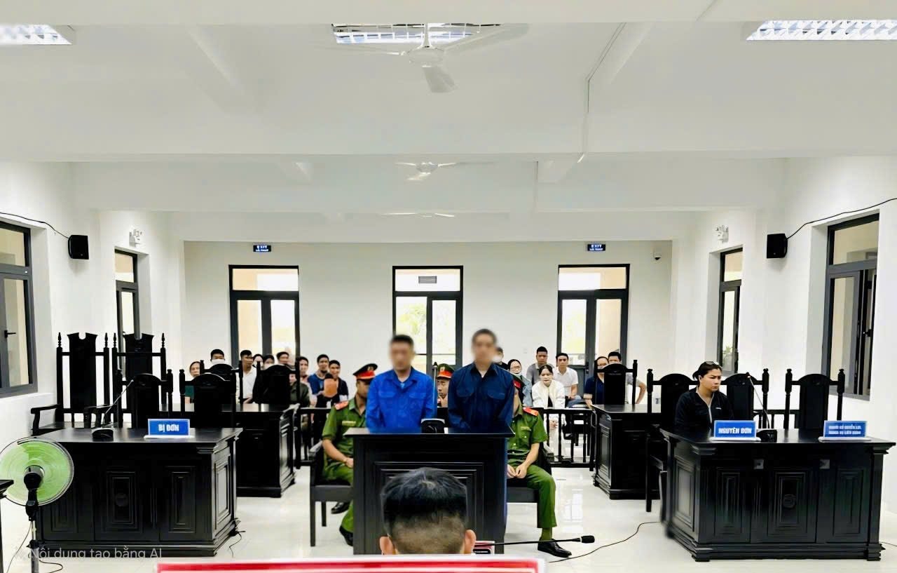 Hai bị cáo tại phiên tòa xét xử sơ thẩm