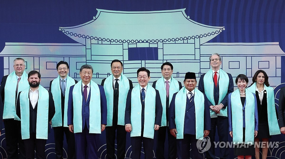 Các nhà lãnh đạo APEC tại Trung tâm Hội nghị Quốc tế Gyeongju Hwabaek ở Gyeongju, Hàn Quốc, vào ngày 1/11/2025. Ảnh: Yonhap.