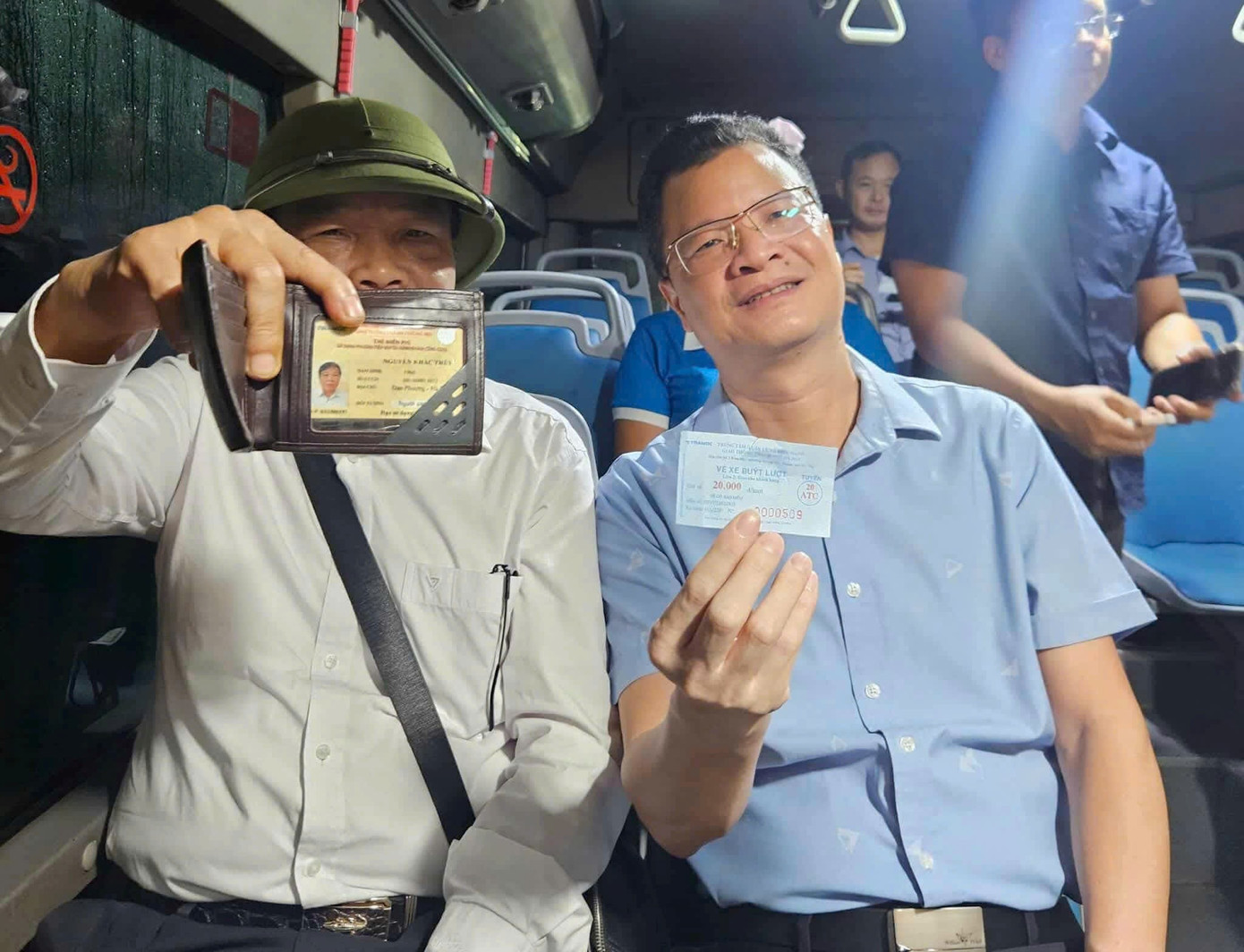 Những vị khách đầu tiên tại xã Minh Châu lên xe buýt tuyến 20ATC để di chuyển.