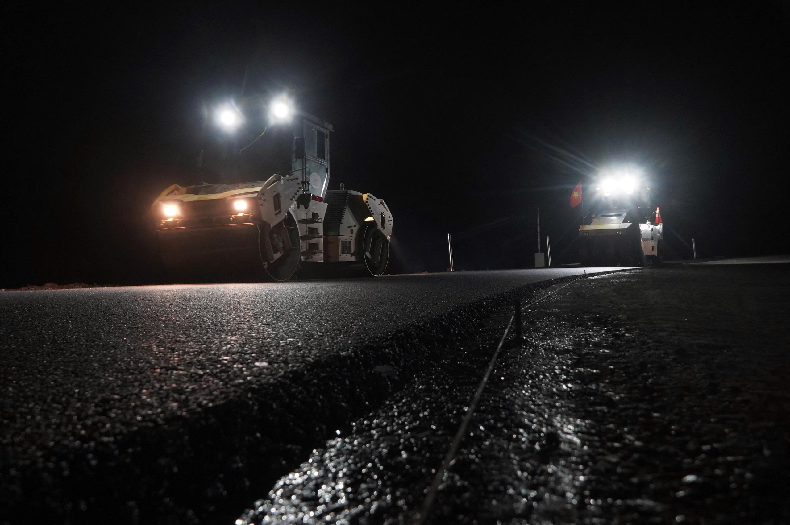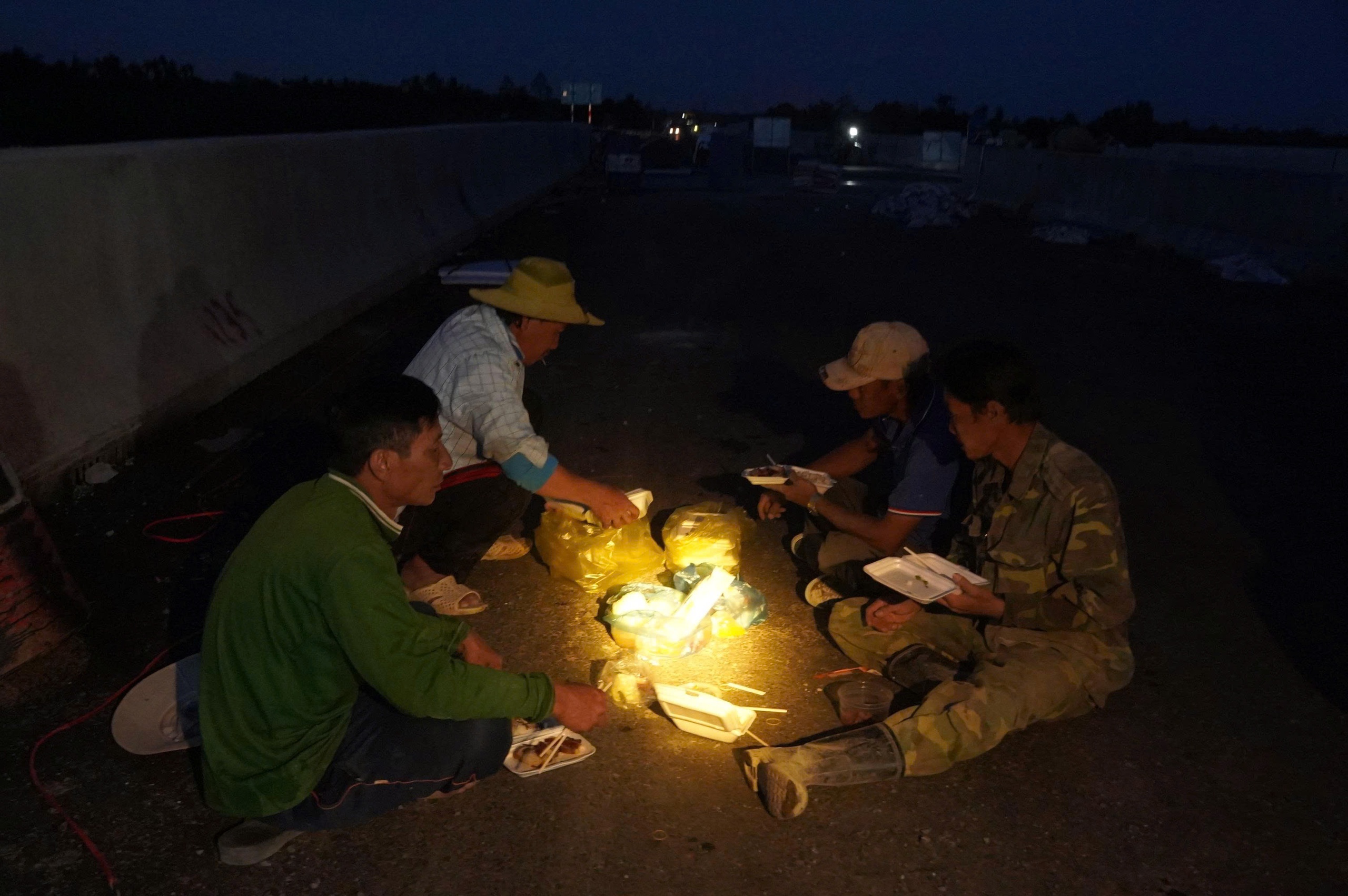 Công nhân thi công xuyên suốt ngày đêm để kịp hoàn thành dự án