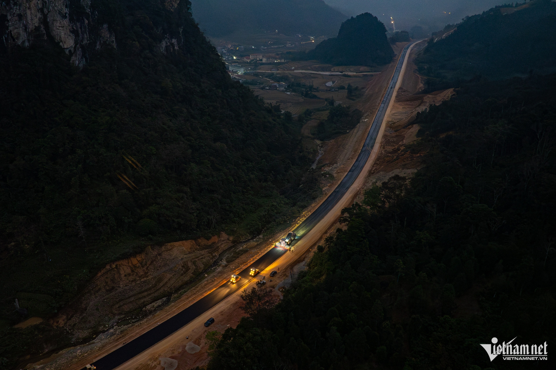 Tại khu vực Km58 (xã Đông Khê, tỉnh Cao Bằng), chỉ sau hai ngày triển khai, lực lượng thi công đã trải thảm được hơn 1km bê tông nhựa.