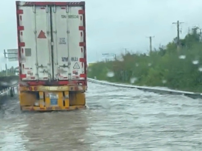 Khoảng 9 giờ sáng 30-10, trên tuyến cao tốc Vĩnh Hảo - Phan Thiết đoạn qua xã Hàm Kiệm, tỉnh Lâm Đồng xảy ra tình trạng ngập nước.