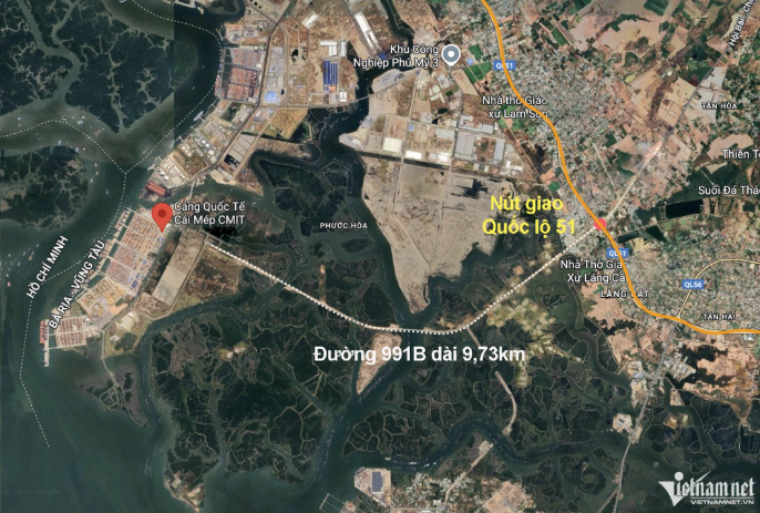 Sơ đồ tuyến đường 991B nối Quốc lộ 51 vào đường liên cảng Cái Mép - Thị Vải. Ảnh: Vietnamnet