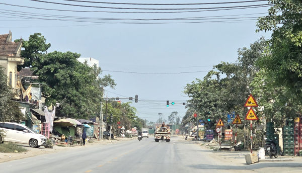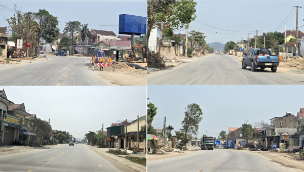 Quốc lộ 46 đoạn qua chợ Vạc, xã Kim Liên sau 1 năm thi công mở rộng, nâng cấp.