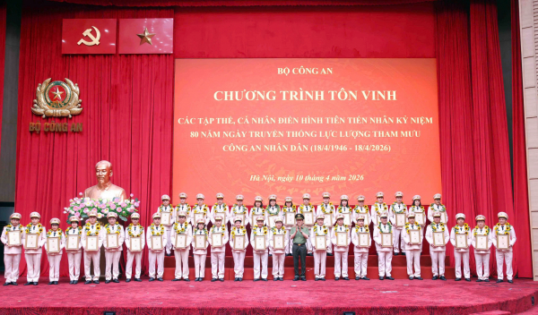 Chiều nay (10/4) Bộ Công an đã trang trọng tổ chức Chương trình tôn vinh các tập thể, cá nhân điển hình tiên tiến 80 năm Ngày truyền thống lực lượng Tham mưu CAND (18/4/1946 – 18/4/2026). Đại tướng Lương Tam Quang, Ủy viên Bộ Chính trị, Bí thư Đảng ủy Công an Trung ương, Bộ trưởng Bộ Công an chủ trì chương trình.