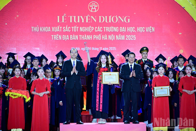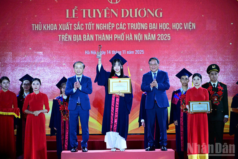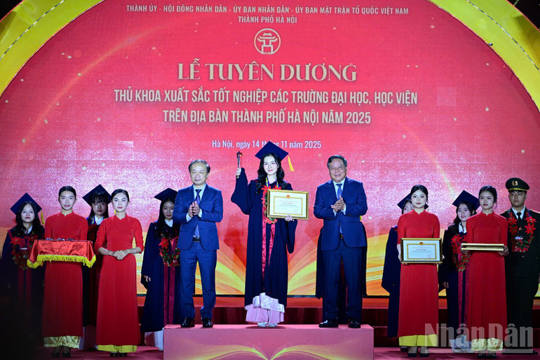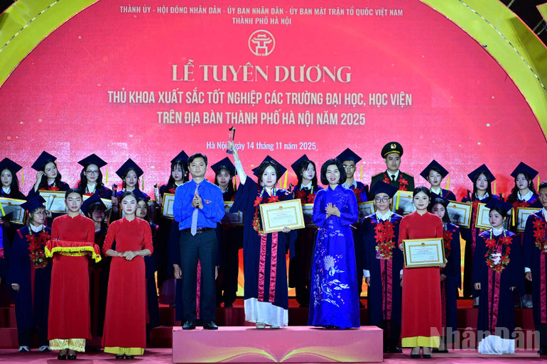 Phát biểu ý kiến tại buổi lễ, Phó Chủ tịch Ủy ban nhân dân thành phố Hà Nội Vũ Thu Hà cho biết: Sau hơn 2 thập kỷ triển khai, thành phố Hà Nội đã tuyên dương, trao Bằng khen của Ủy ban nhân dân thành phố Hà Nội tặng tổng cộng 2.351 thủ khoa xuất sắc.