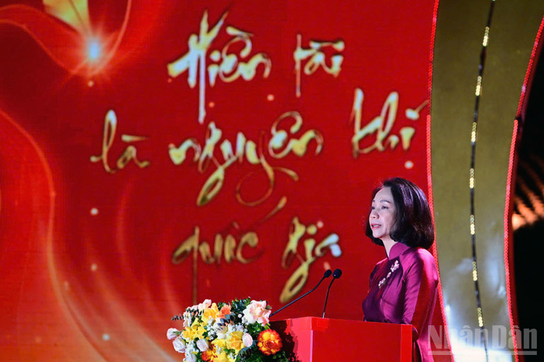 Đồng chí Vũ Thu Hà phát biểu ý kiến tại buổi lễ.