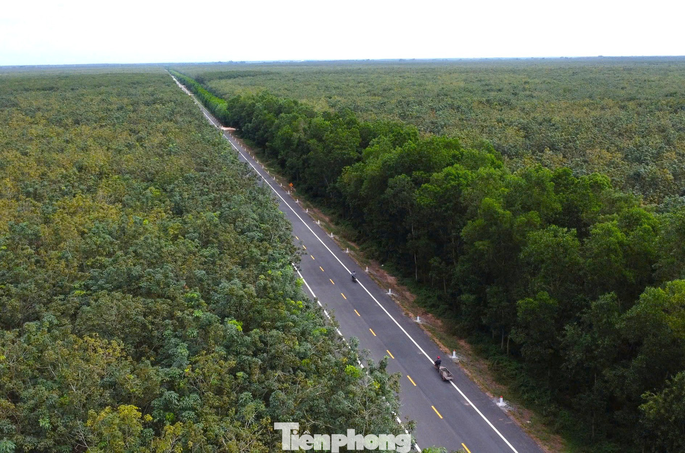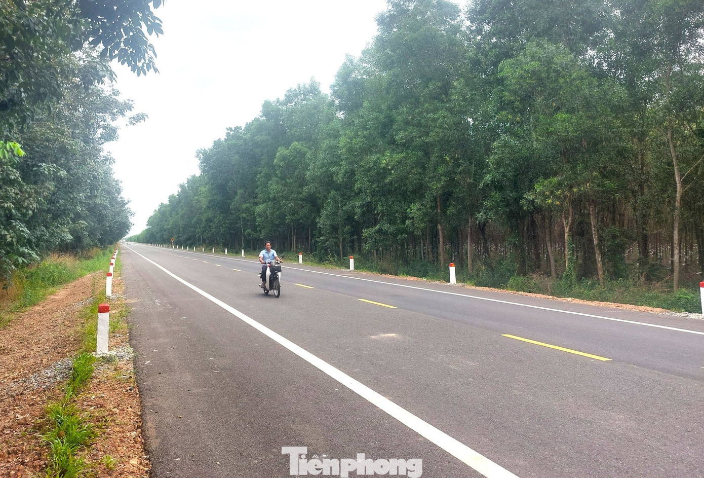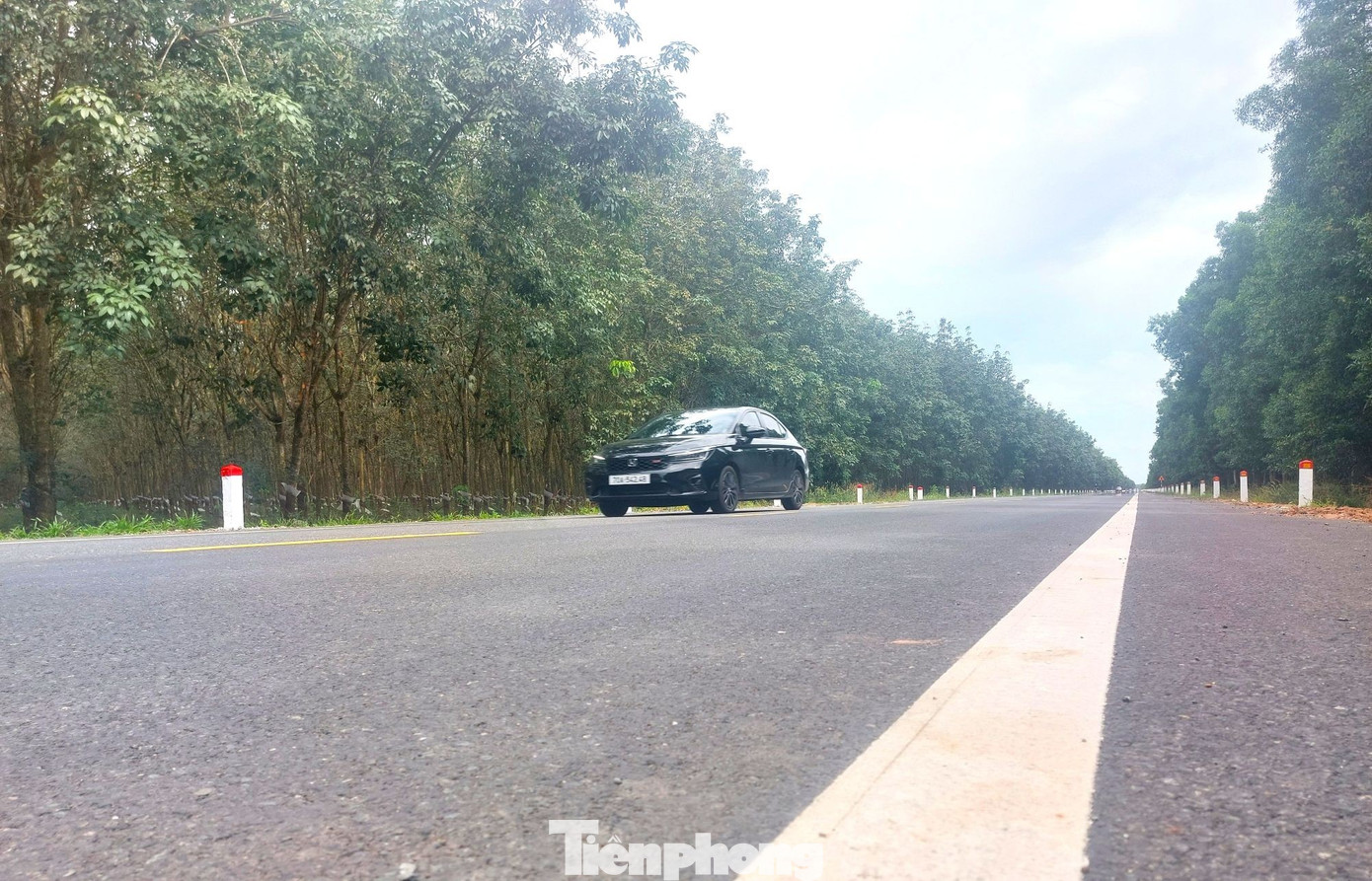 Đường Hồ Chí Minh băng qua rừng cao su, tạo cảm giác mát mẻ khi lưu thông trên đường này.