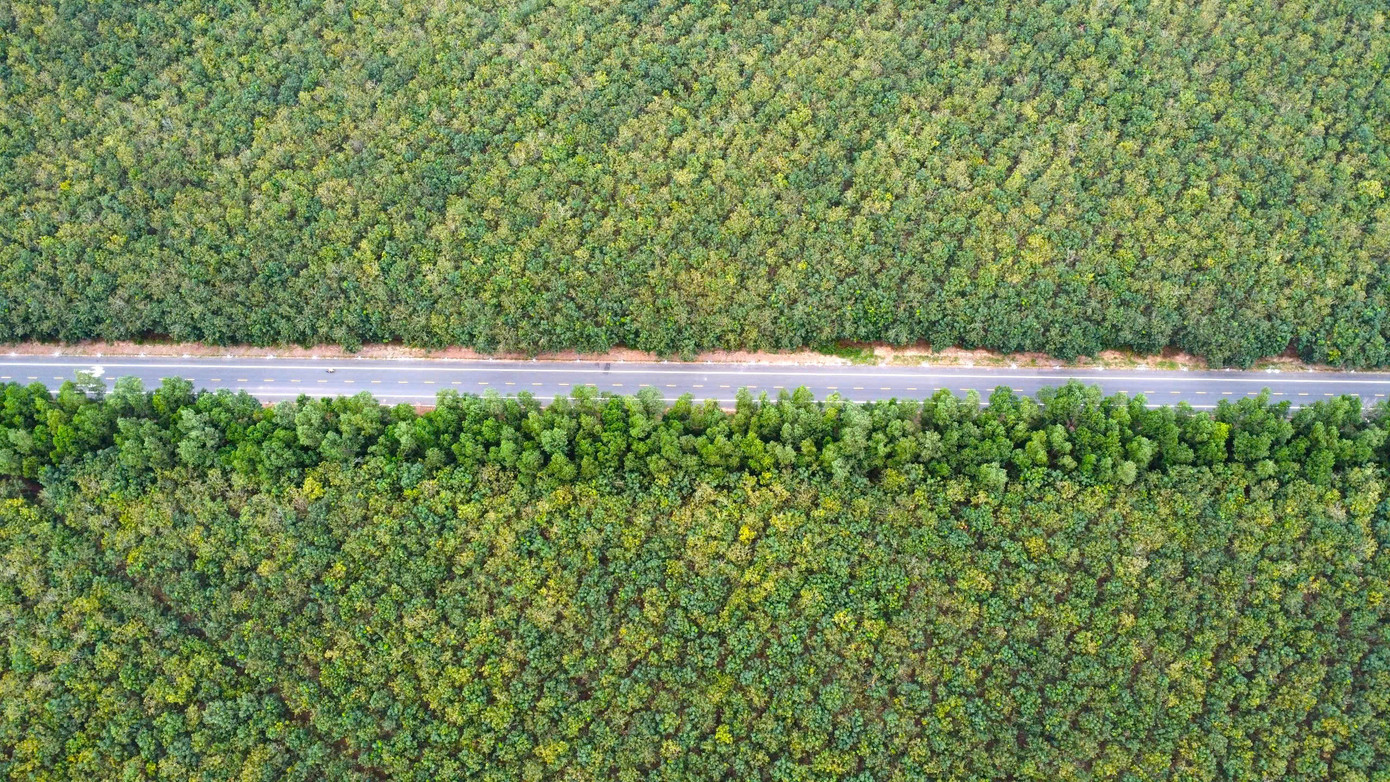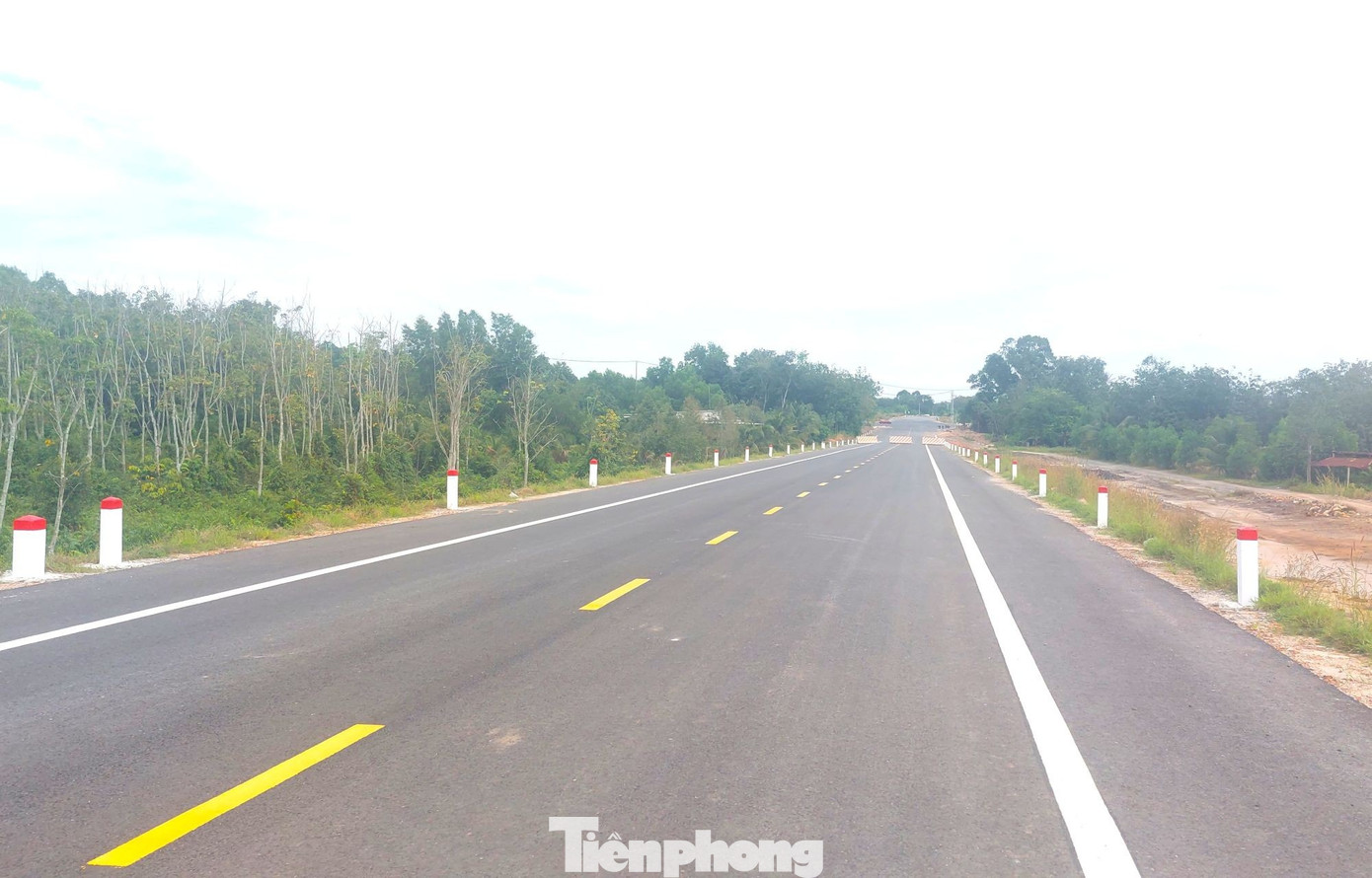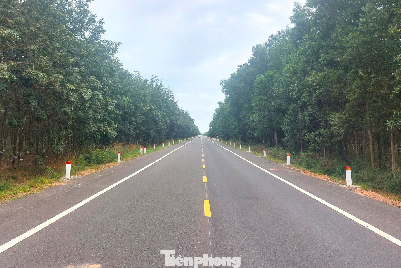 Đường Hồ Chí Minh băng qua rừng cao su, tạo cảm giác mát mẻ khi lưu thông trên đường này.