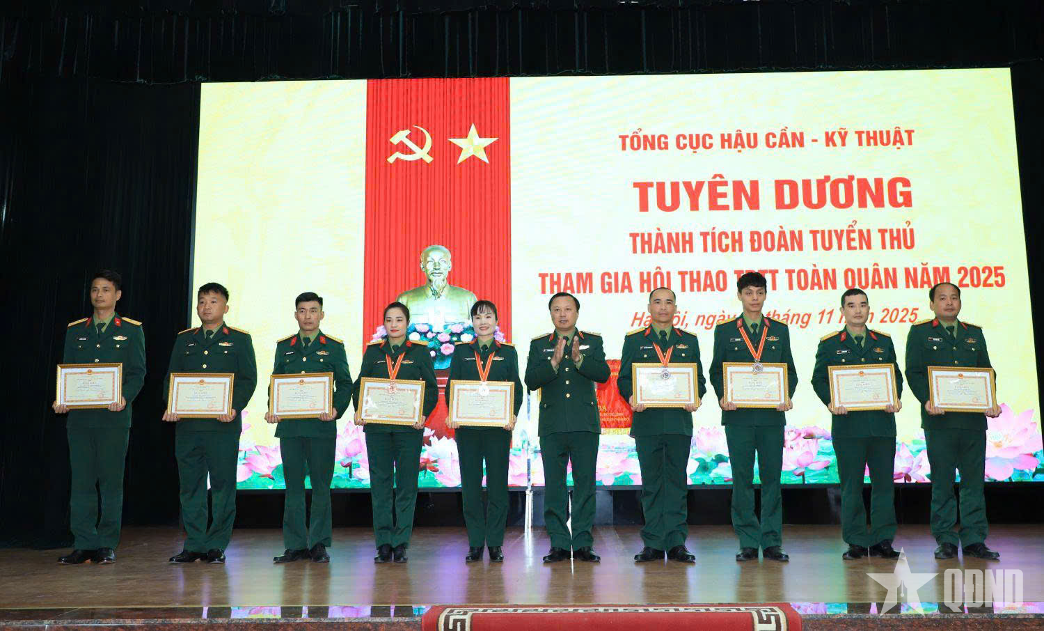 Dịp này, Thủ trưởng Tổng cục Hậu cần - Kỹ thuật đã trao các hình thức khen thưởng tặng tập thể, cá nhân có thành tích xuất sắc trong tham mưu, tổ chức, bảo đảm cho Đoàn tuyển thủ và các cá nhân đạt thành tích cao tại Hội thao.