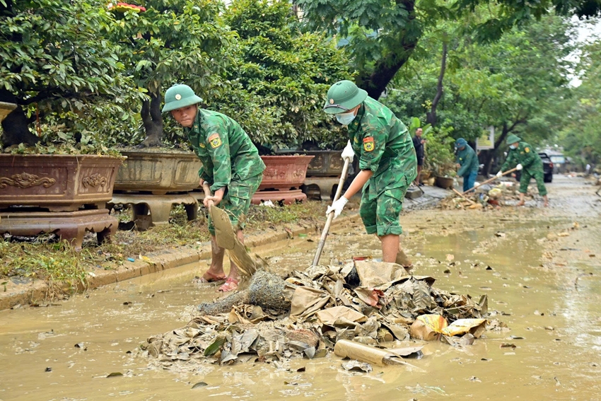 Tuổi trẻ BĐBP xung kích trong khắc phục hậu quả thiên tai, bão lụt. (Ảnh: BĐBP)