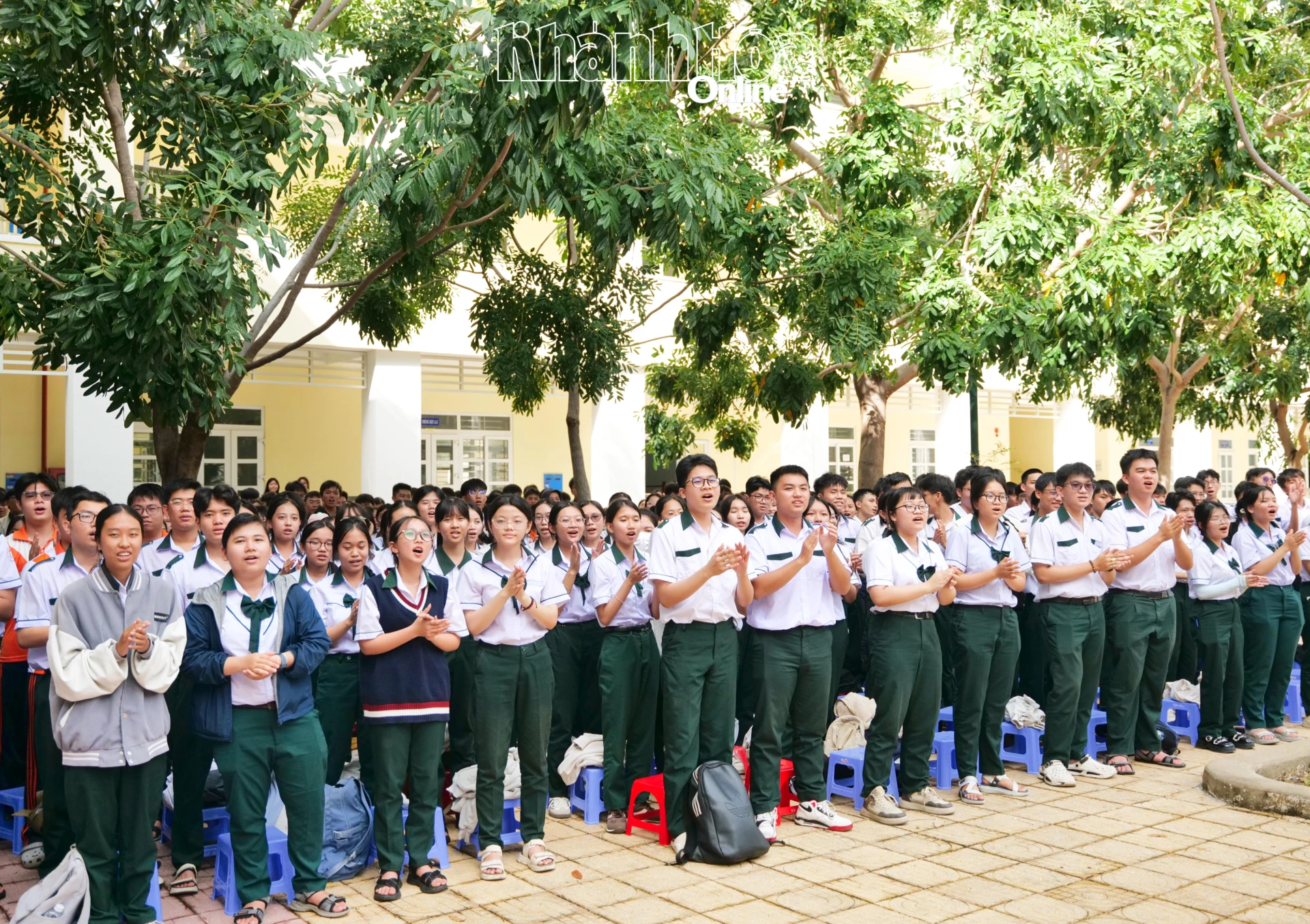 Học sinh toàn trường hào hứng cùng biểu diễn các tiết mục văn nghệ.