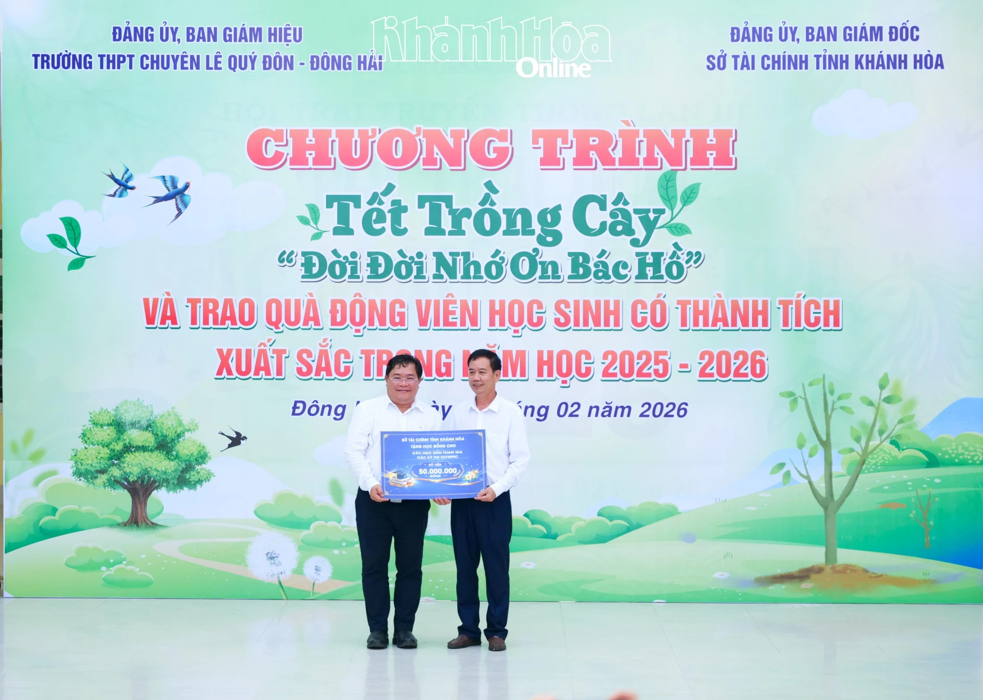Chiều 27-2, tại Trường THPT Chuyên Lê Quý Đôn – Đông Hải, Chi đoàn Sở Tài chính tổ chức trồng cây xanh, trao học bổng và tuyên dương học sinh tiêu biểu, hưởng ứng phong trào “Tết trồng cây đời đời nhớ ơn Bác Hồ” và Tháng Thanh niên năm 2026. Tham dự có ông Châu Ngô Anh Nhân - Giám đốc Sở Tài chính tỉnh Khánh Hòa.