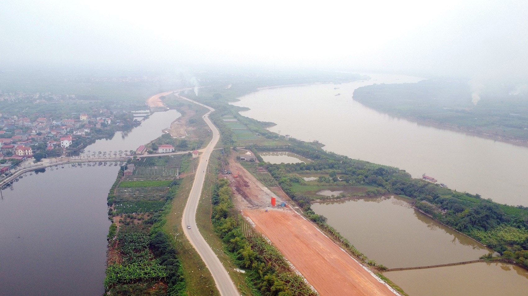 Dự án kỳ vọng hình thành tuyến đường liên kết vùng kết nối các công trình di sản văn hóa, tâm linh dọc sông Hồng. Trong ảnh: Dự án có đoạn đi trong và ngoài đê sông Hồng.