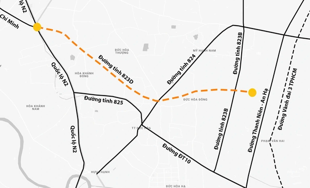 Đáng chú ý, đoạn cuối tuyến dự kiến sẽ được nối dài, bắc qua kênh Thanh Niên để kết nối với đường Vành đai 3 Tp.HCM, từng bước hoàn thiện mạng lưới giao thông liên vùng.