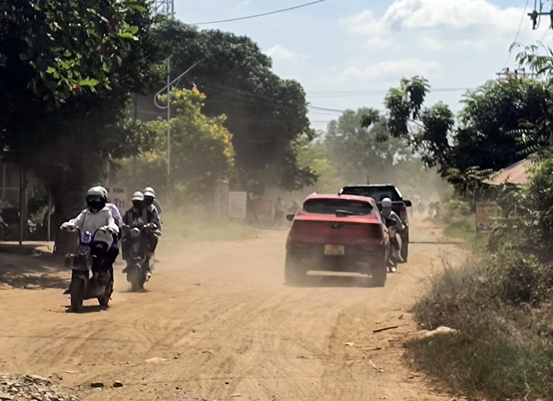 Vào mùa nắng, đoạn đường này bụi mù mịt